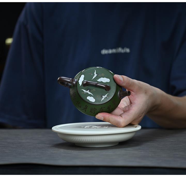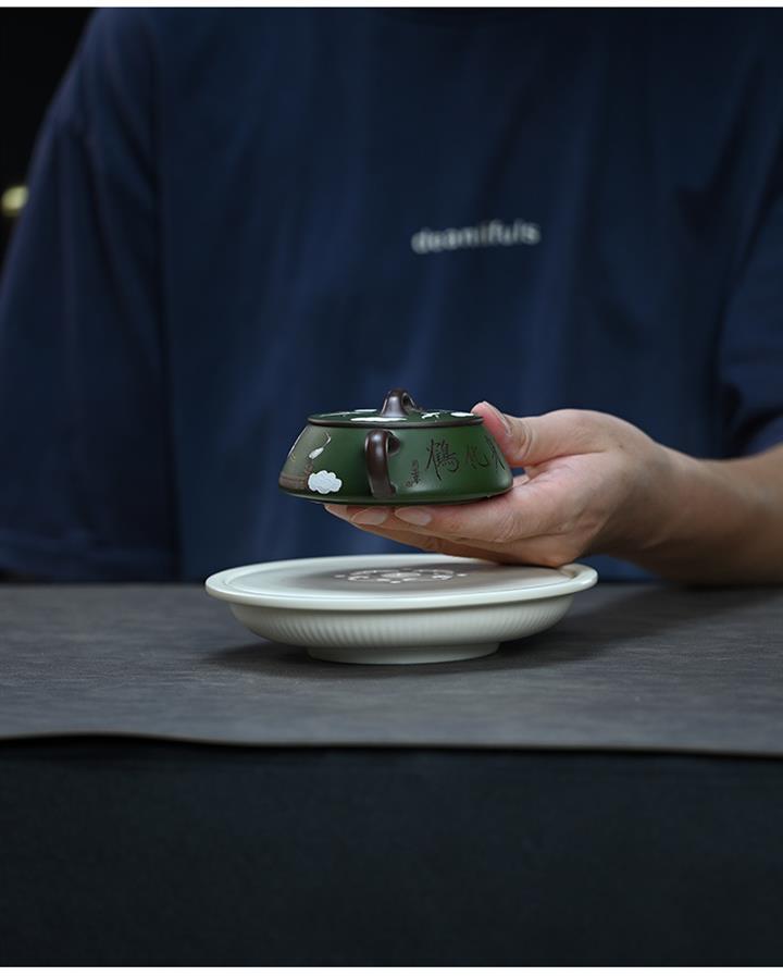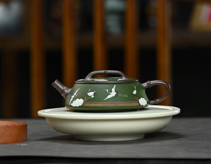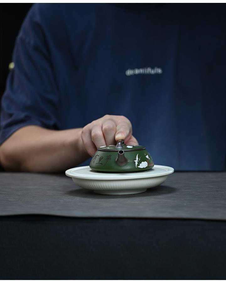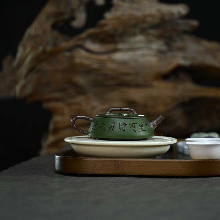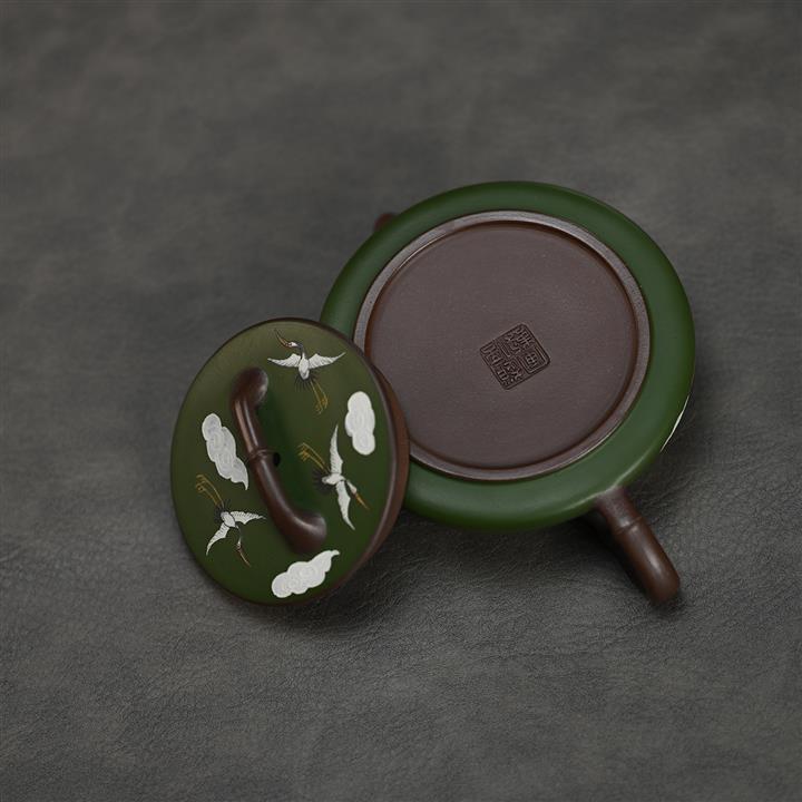 160cc翡翠綠泥描金寶相花-寒江茶壺POT8811