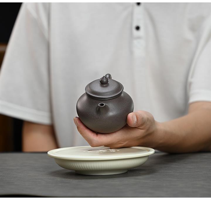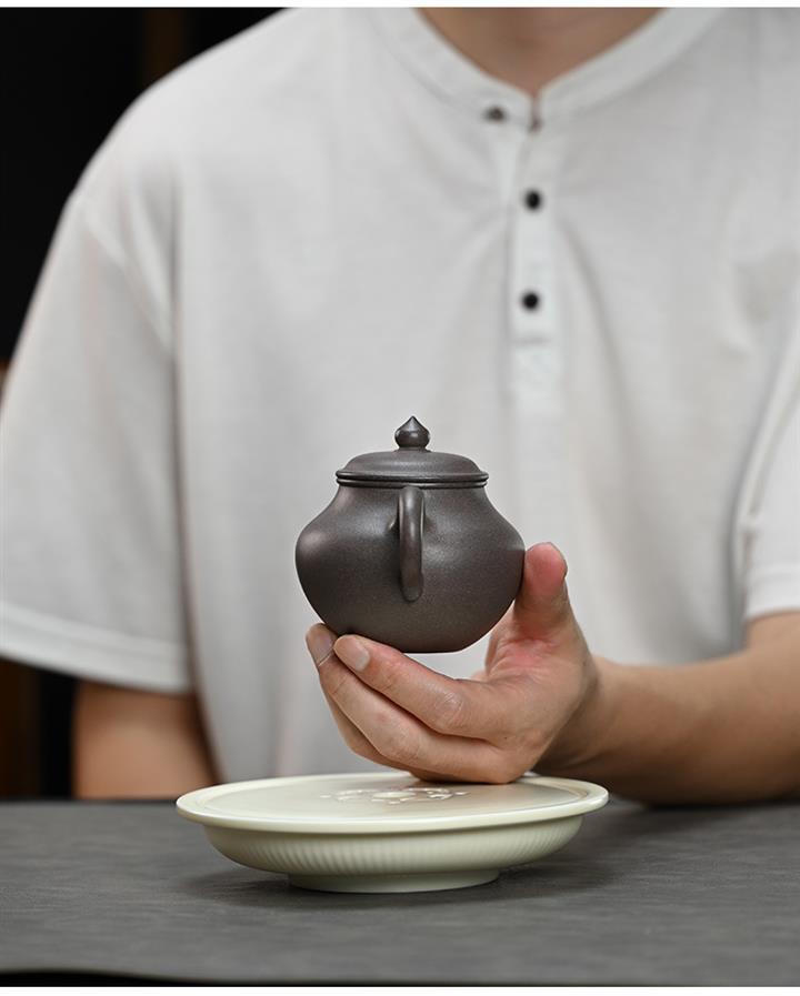 【泥料特點】砂土氣重,似淳實農民,日久使用,漸露鋒芒,養成變化,溫潤莊重。紫砂是壹種雙重氣孔結構的多孔性材質,氣孔微細,密度高。用紫砂壺沏茶,不失原味,且香不渙散,得茶之真香真味。紫砂使用越久,壺身色澤越發光亮照人,氣韻溫雅。紫砂壺長久使用器身會因撫摸擦拭,變得越發溫潤光澤。