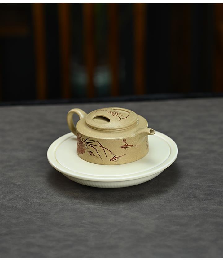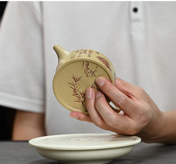 180cc原礦綠泥牛蓋刻繪茶壺POT8351