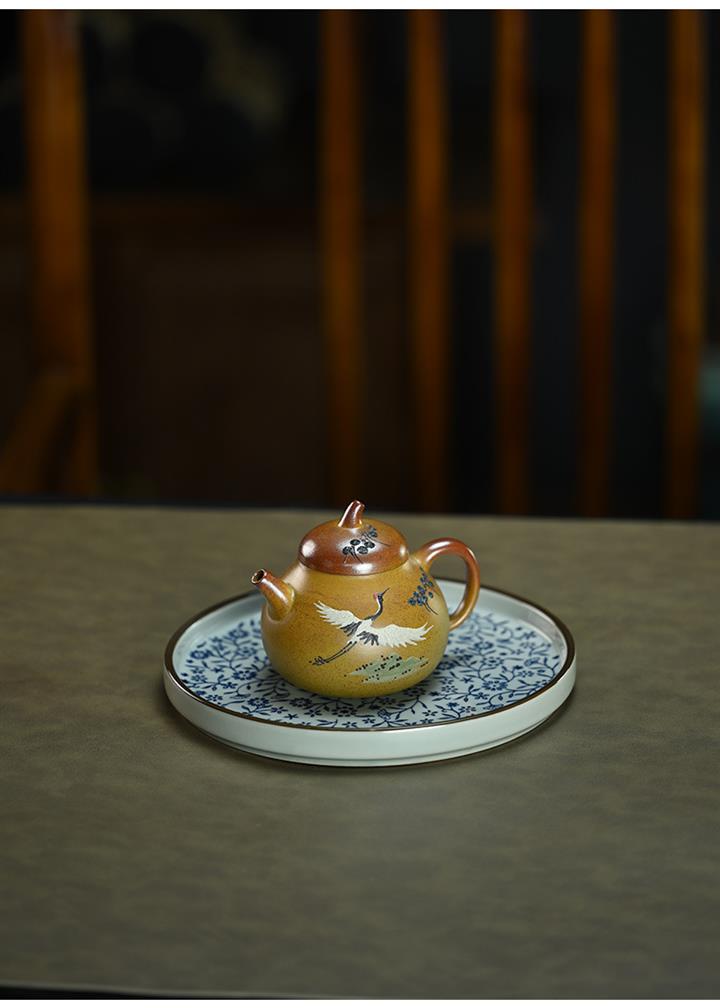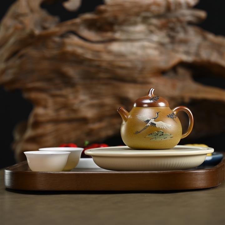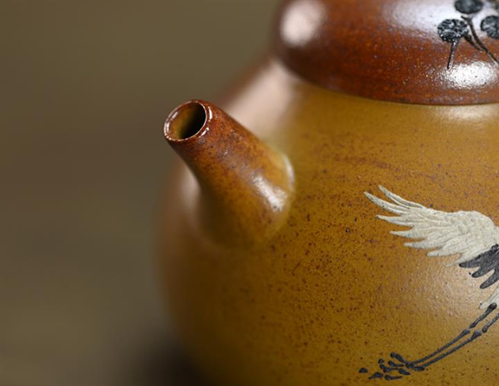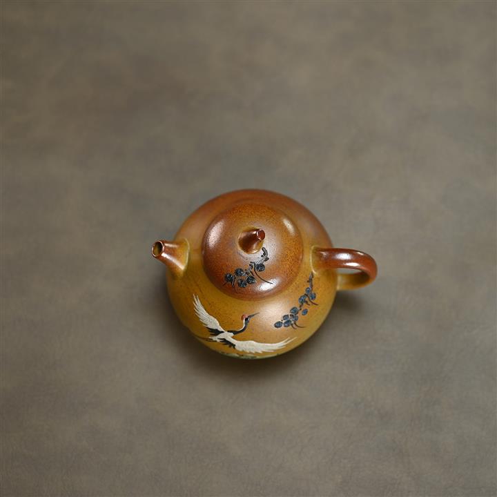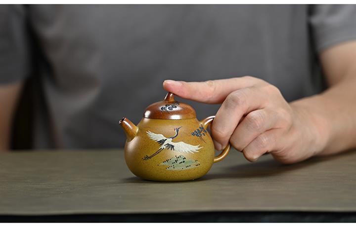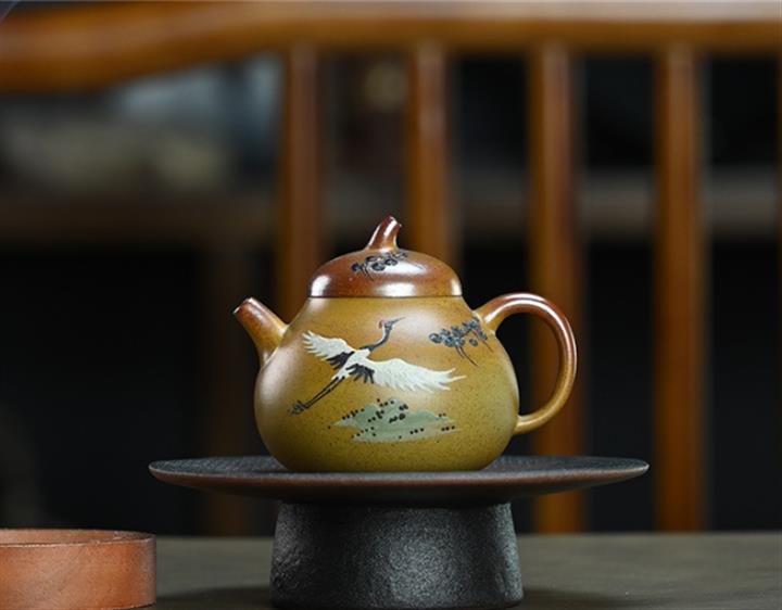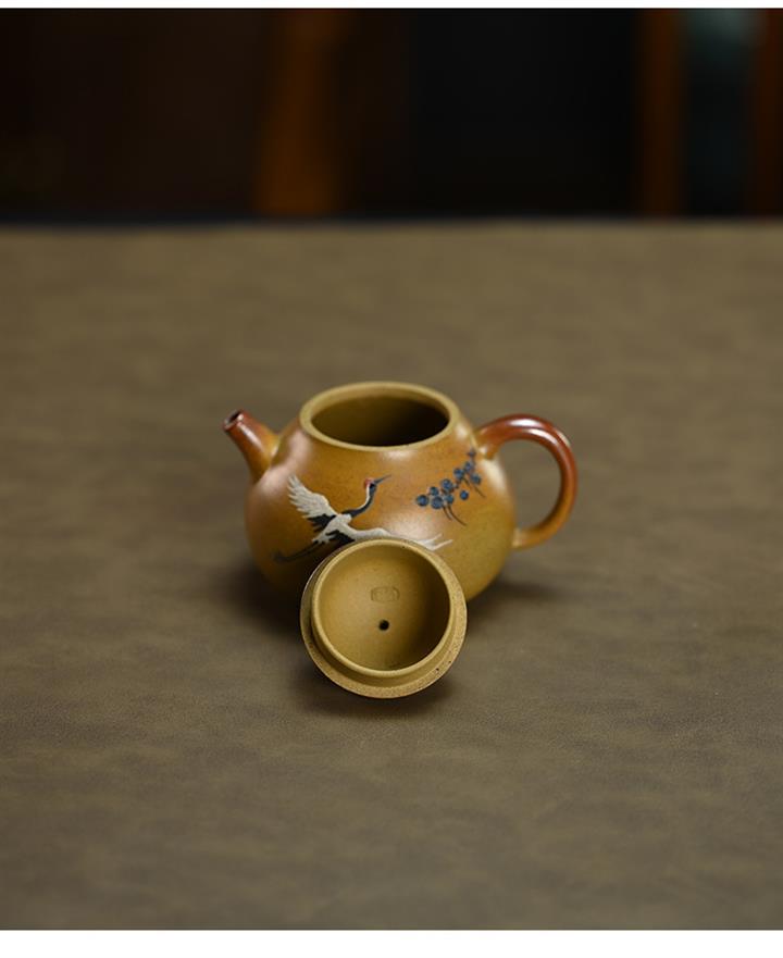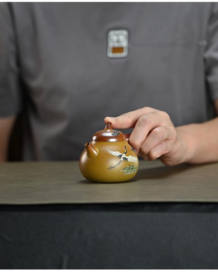 190cc原礦段泥仙鶴茄瓜泥繪茶壺POT8356