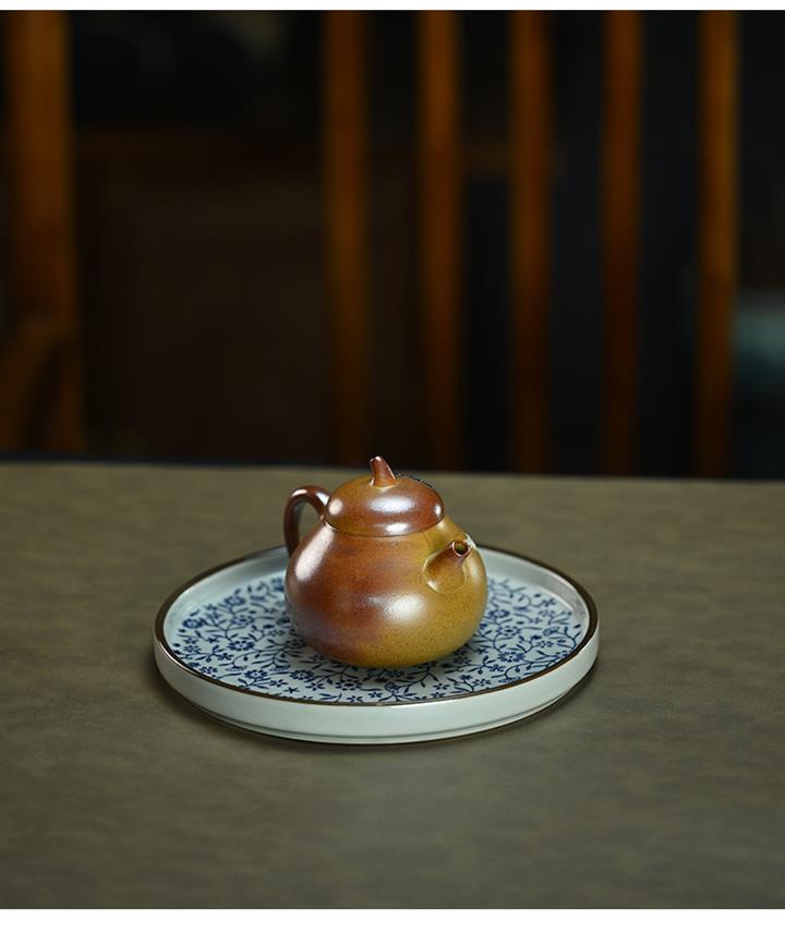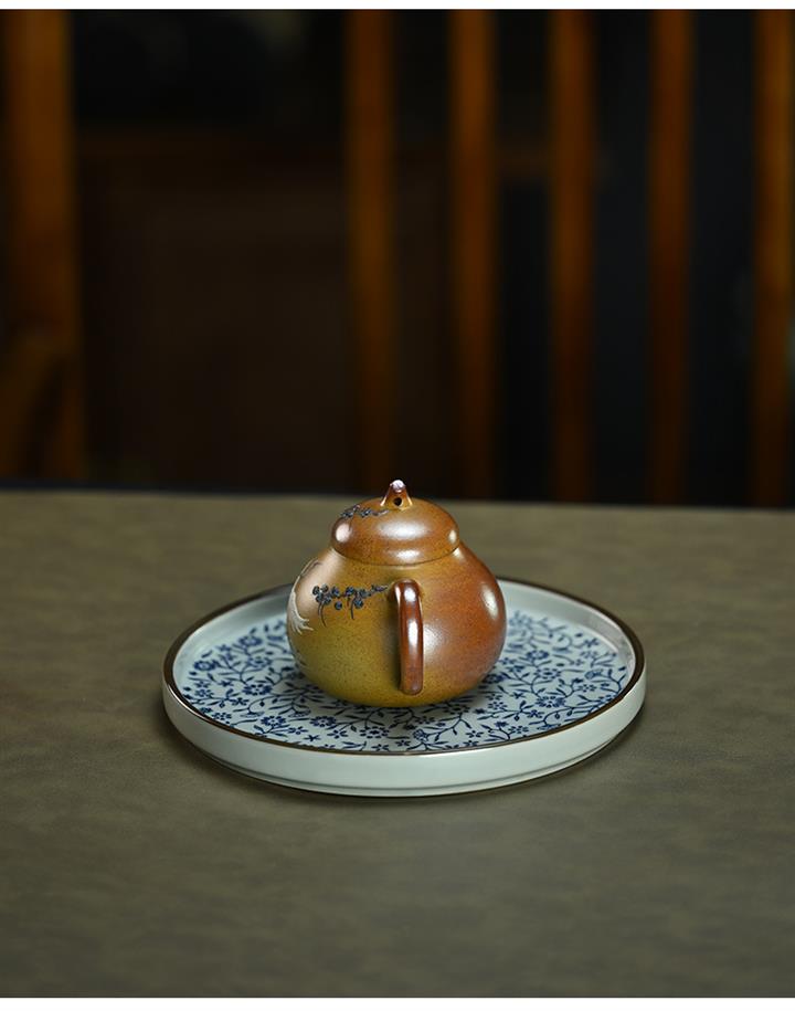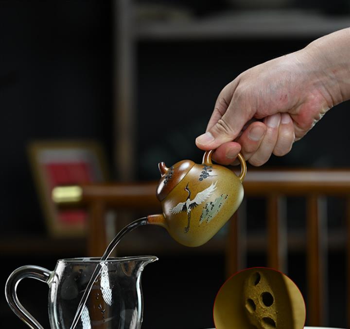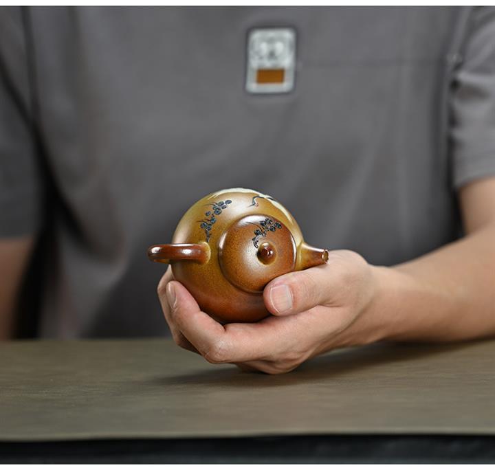 【泥料特點】砂土氣重,似淳實農民,日久使用,漸露鋒芒,養成變化,溫潤莊重。紫砂是壹種雙重氣孔結構的多孔性材質,氣孔微細,密度高。用紫砂壺沏茶,不失原味,且香不渙散,得茶之真香真味。紫砂使用越久,壺身色澤越發光亮照人,氣韻溫雅。紫砂壺長久使用器身會因撫摸擦拭,變得越發溫潤光澤。