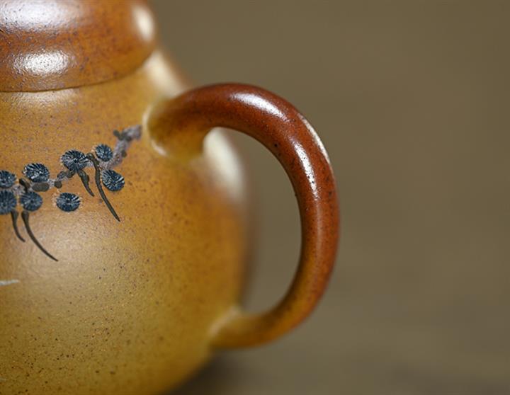 【作品介紹】此款壺形線條流暢,壺把,壺嘴,壺身壹氣呵成栩栩如生,是收藏把玩的好壺,泥料色澤古樸典雅,日久使用,漸露鋒芒,養成變化快,溫潤莊重,用其泡茶,使用的年代久,壺身就溫潤,泡出來的茶湯也就醇郁芳馨。