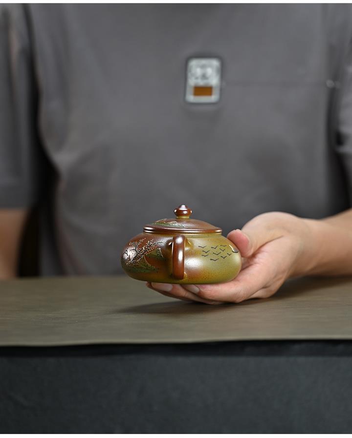 250cc原礦百目紫泥金刻暗香秦權茶壺POT8927