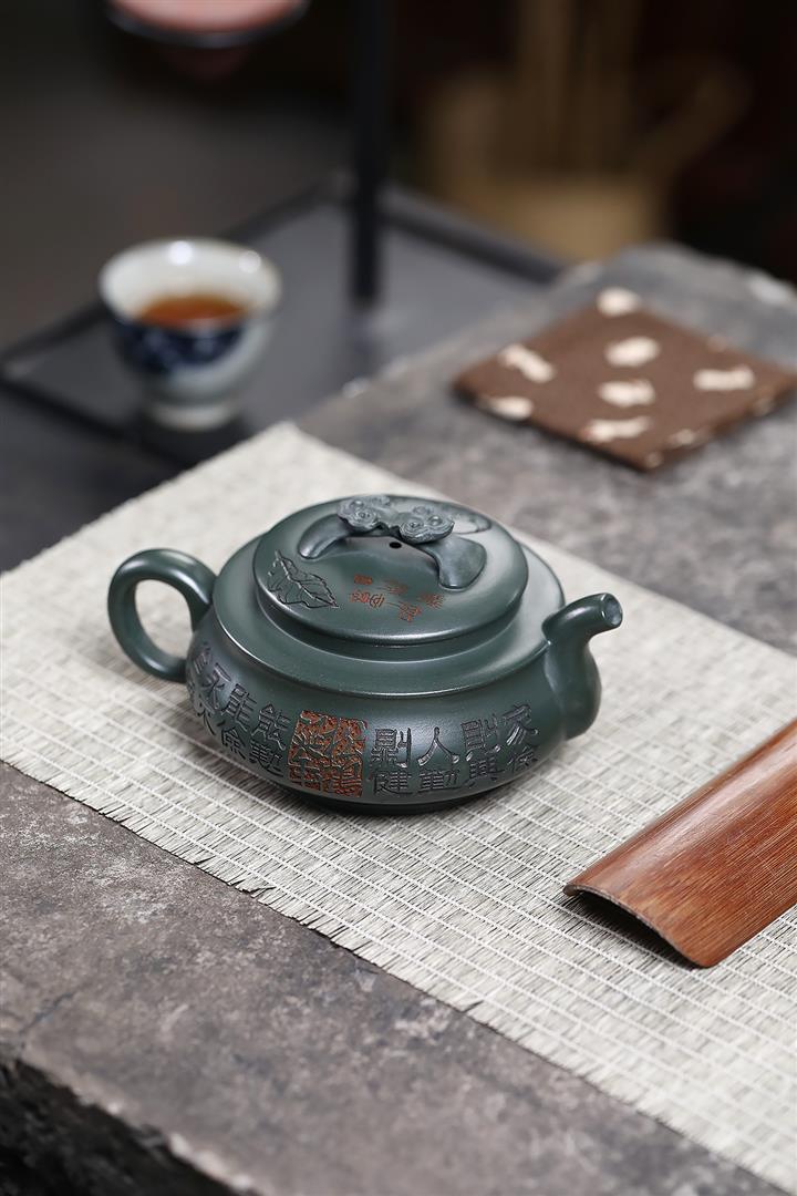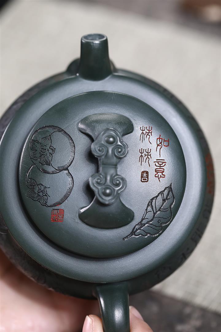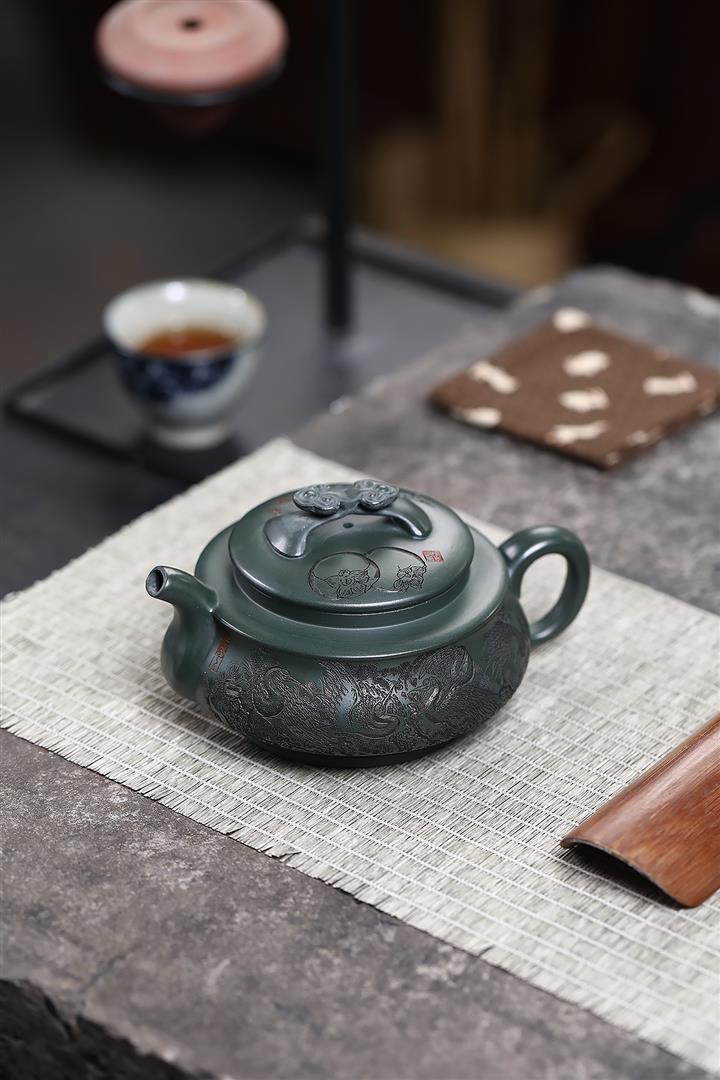 原礦綠泥刻繪猿猴合歡茶壺POT7033