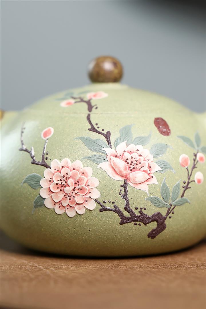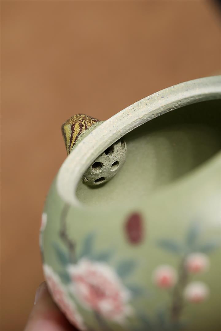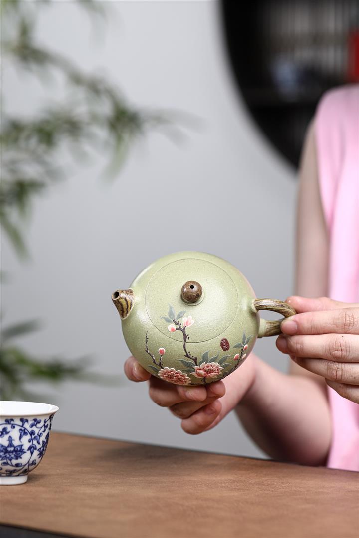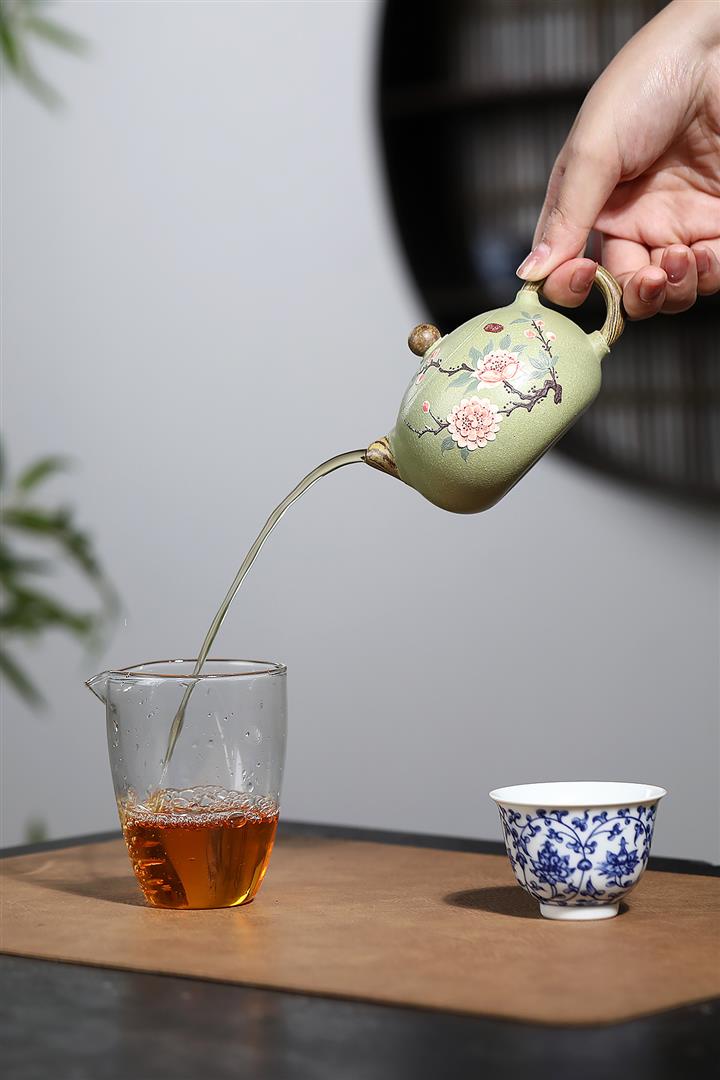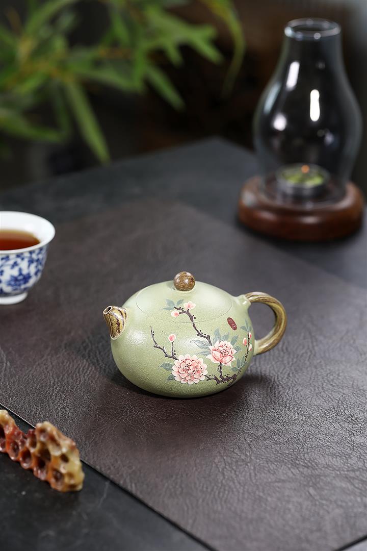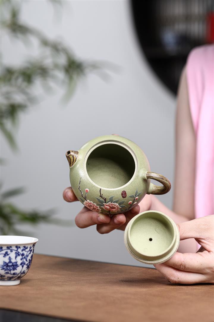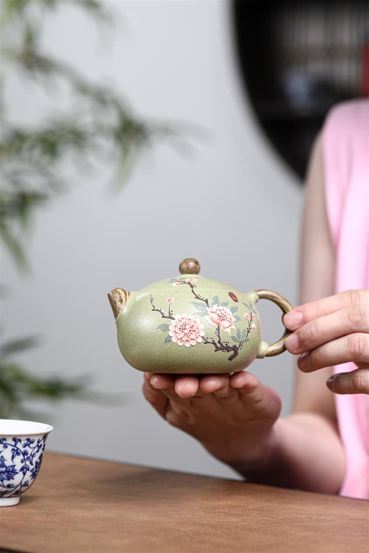 【泥料特點】砂土氣重,似淳實農民,日久使用,漸露鋒芒,養成變化,溫潤莊重。紫砂是壹種雙重氣孔結構的多孔性材質,氣孔微細,密度高。用紫砂壺沏茶,不失原味,且香不渙散,得茶之真香真味。紫砂使用越久,壺身色澤越發光亮照人,氣韻溫雅。紫砂壺長久使用器身會因撫摸擦拭,變得越發溫潤光澤。