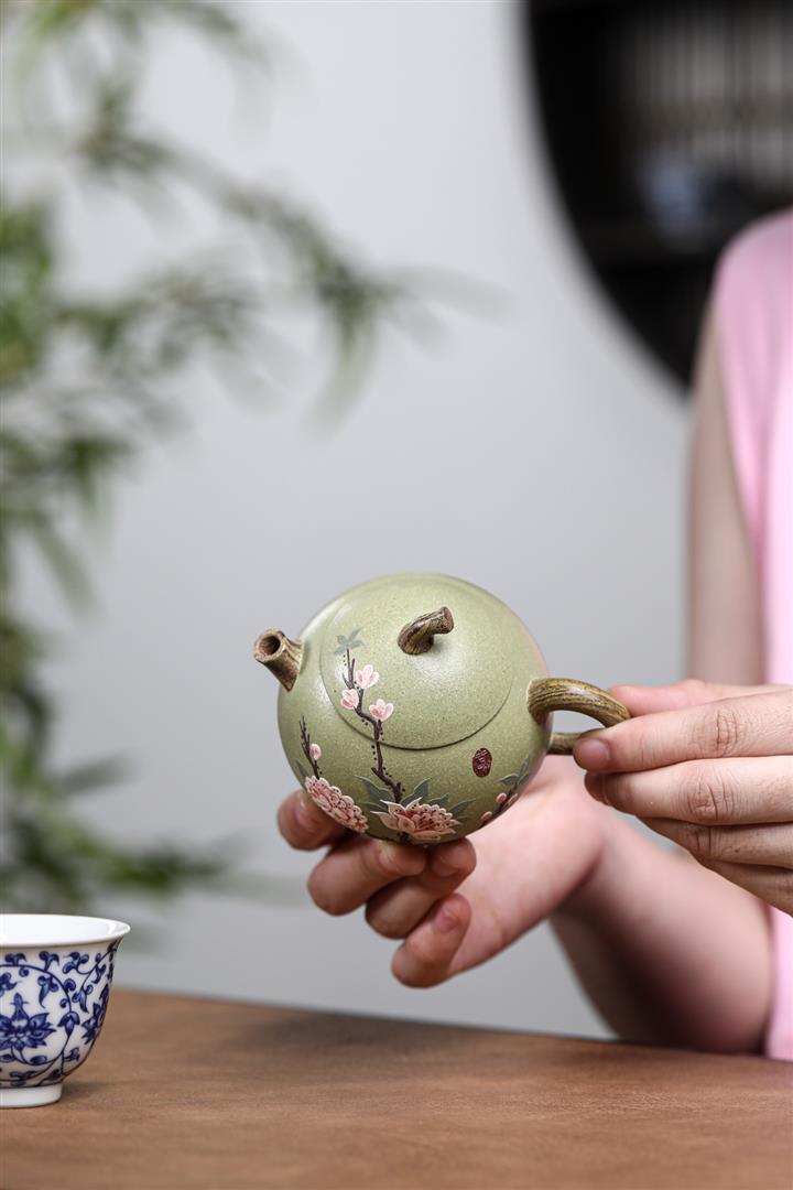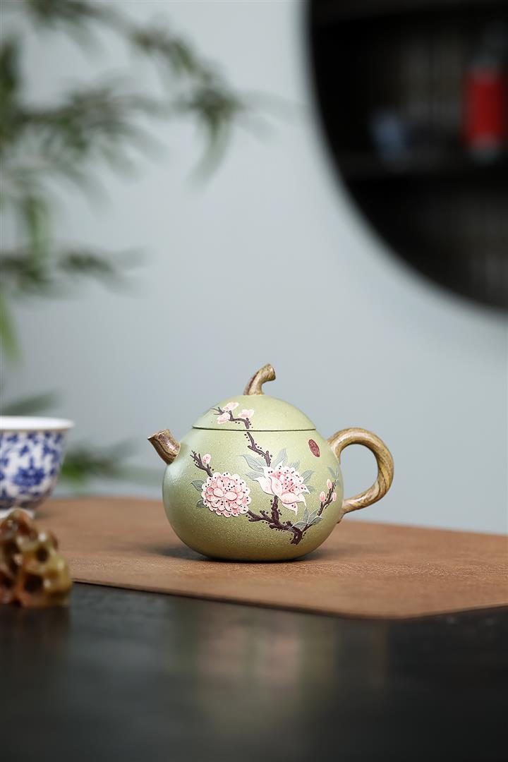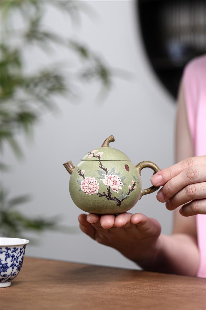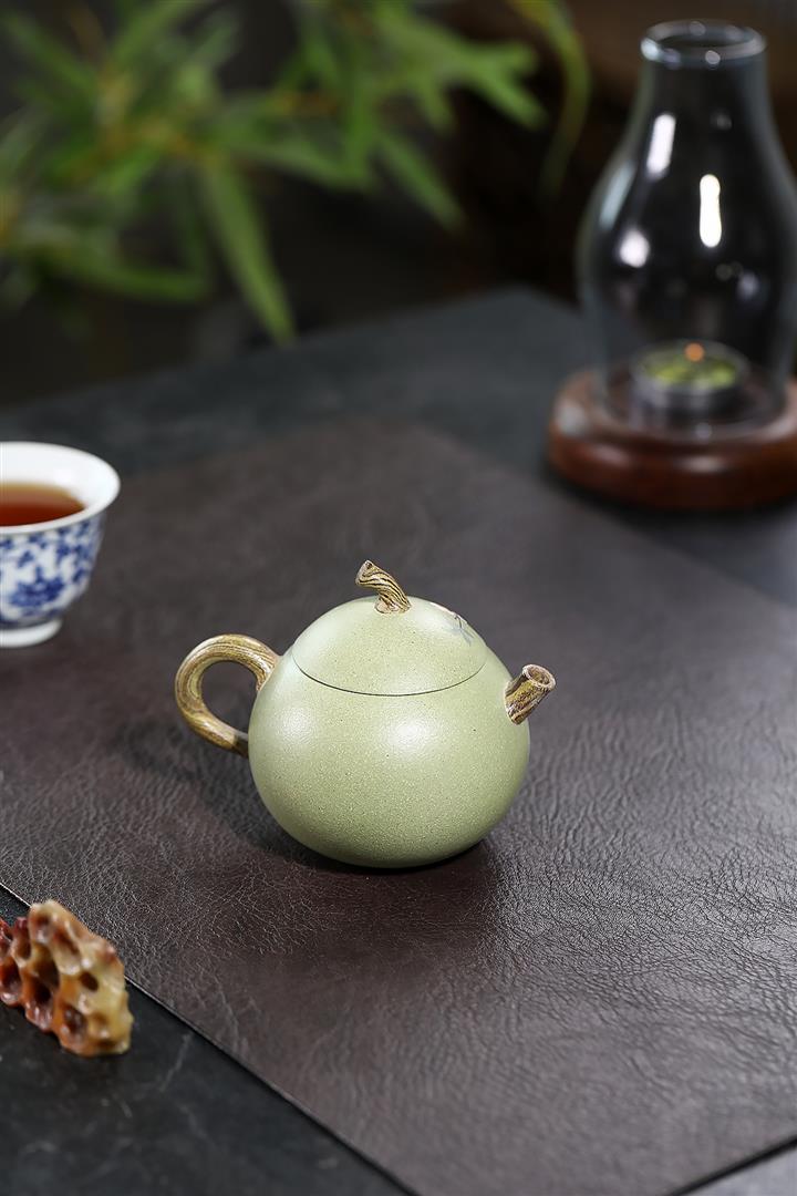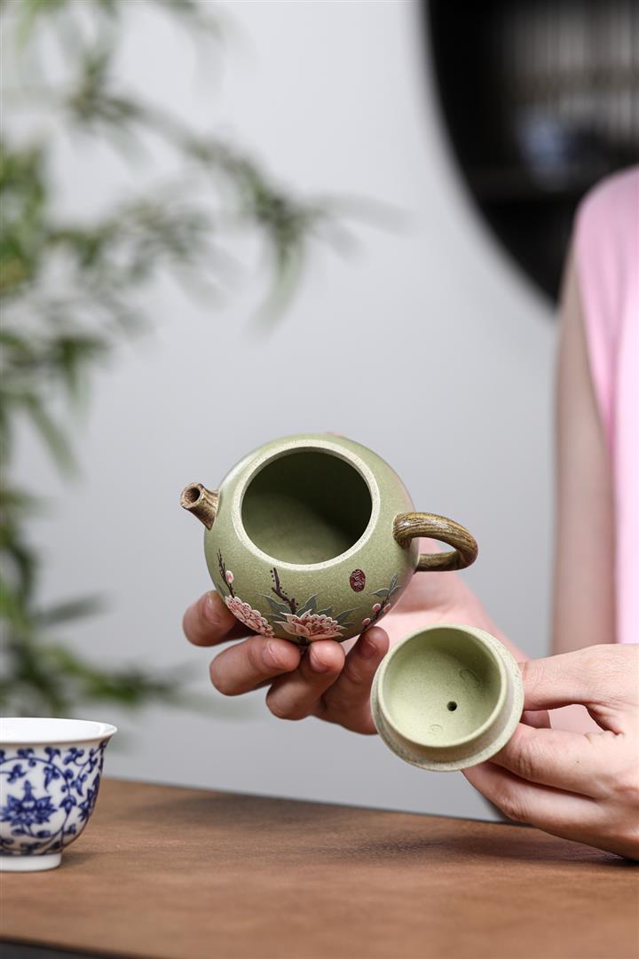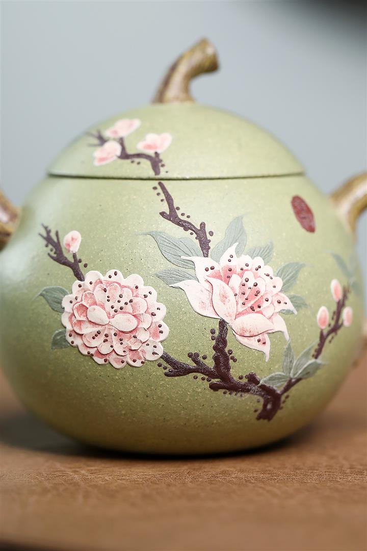 210cc原礦綠泥百福納財刻繪茶壺POT8363