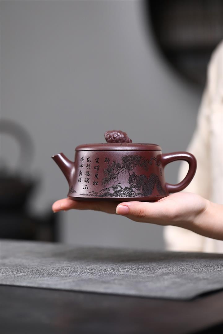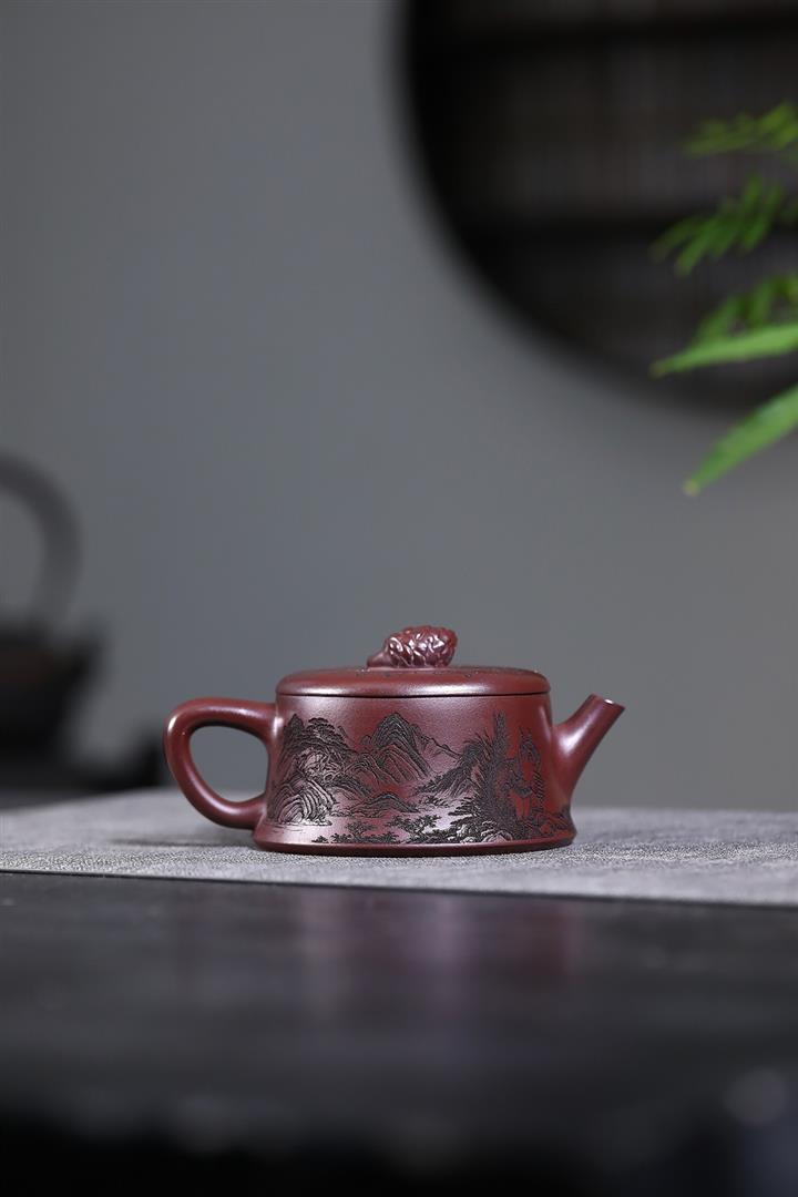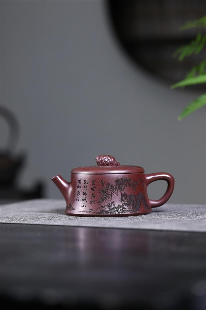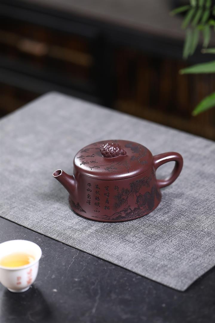 280cc原礦石紅泥滿刻松趣丹霞漢瓦茶壺POT8403
