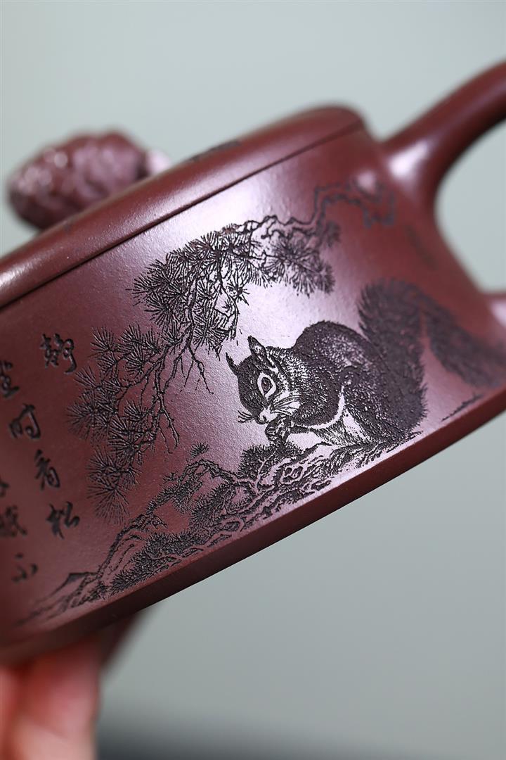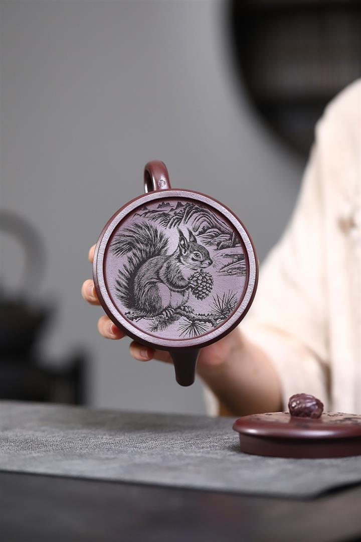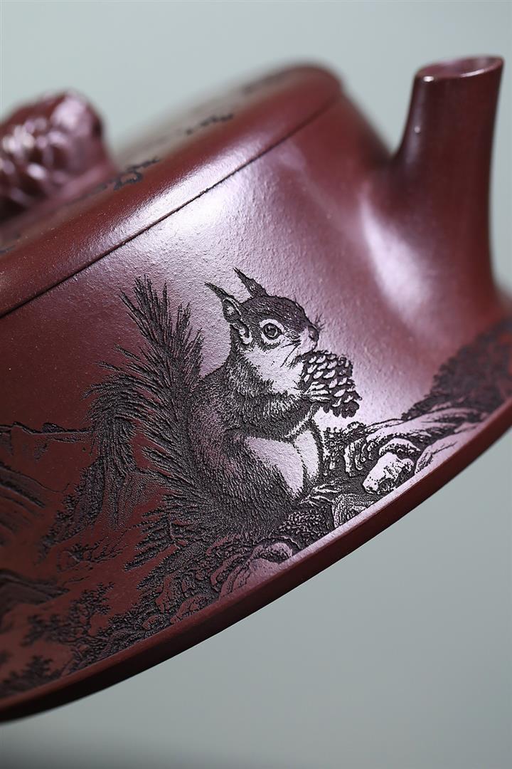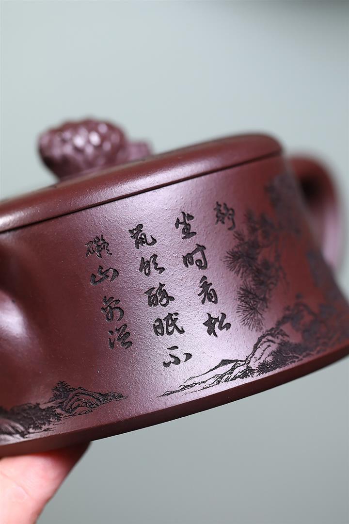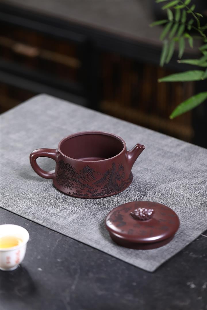 280cc原礦石紅泥滿刻松趣丹霞漢瓦茶壺POT8403
