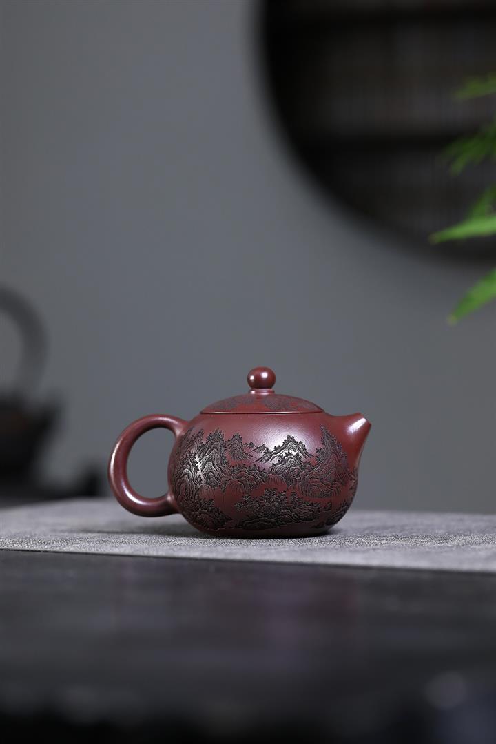 320cc原礦石紅泥滿刻桃源西施茶壺POT8404