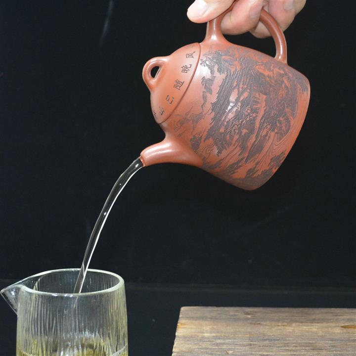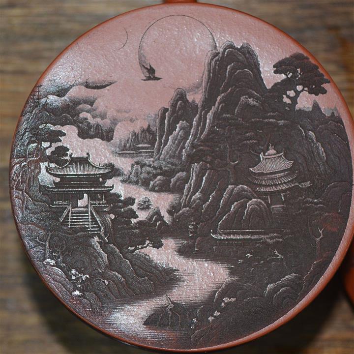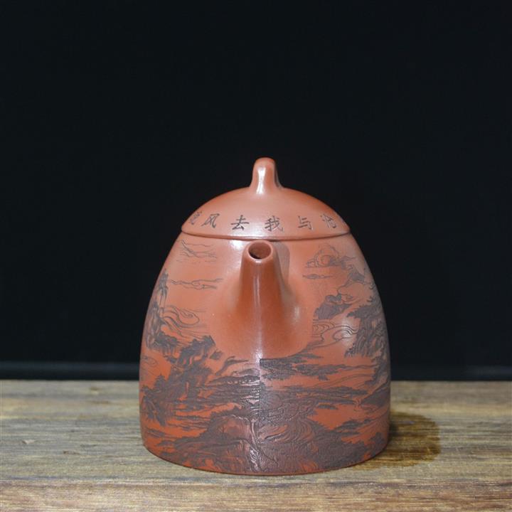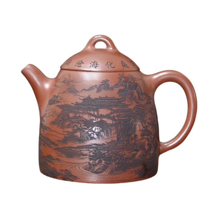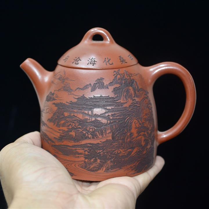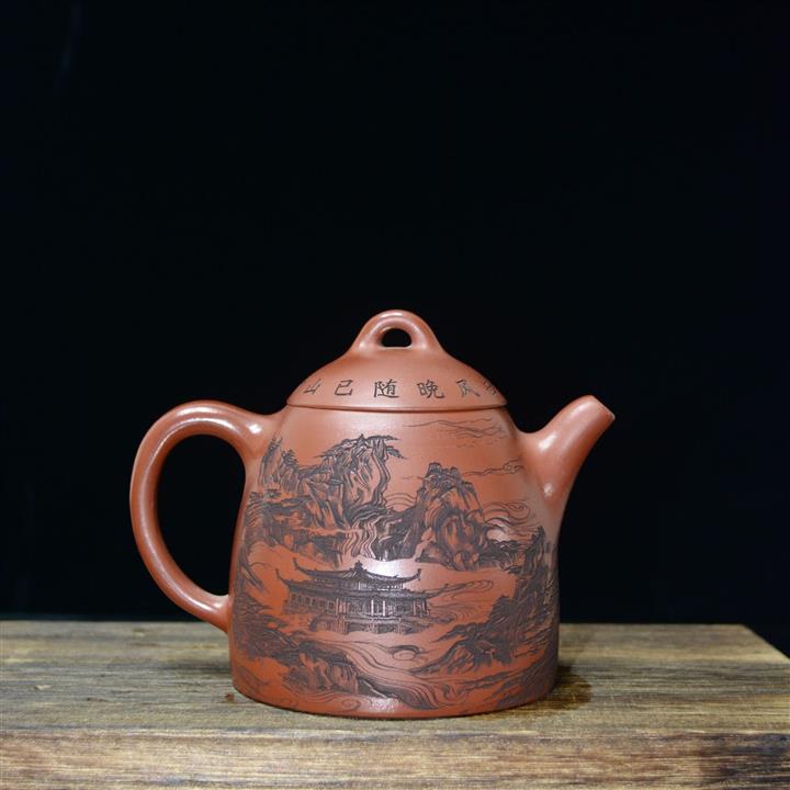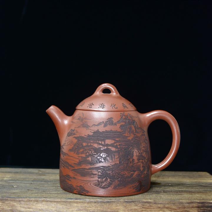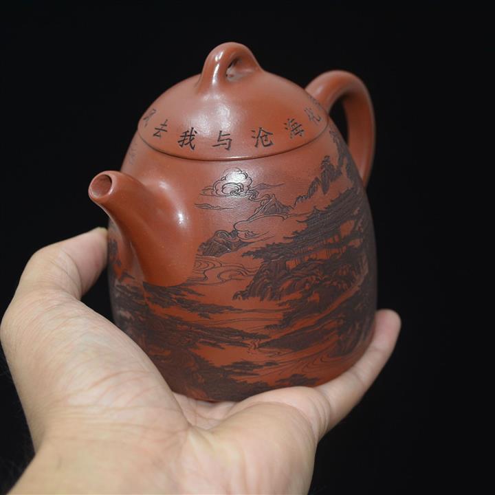 320cc原礦紅皮龍刻繪山水秦權泡茶壺POT8411