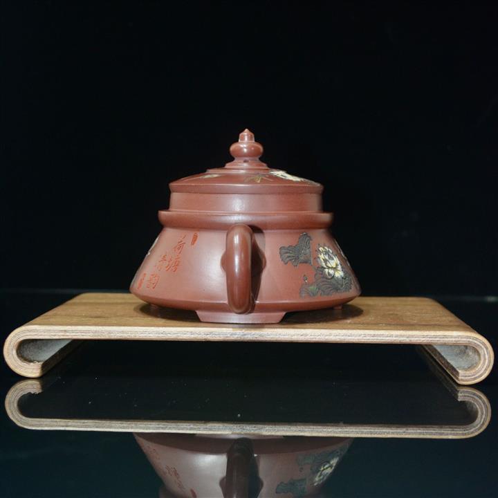 235cc原礦黃金段泥泥繪蓮蓬漢瓦茶壺POT8143