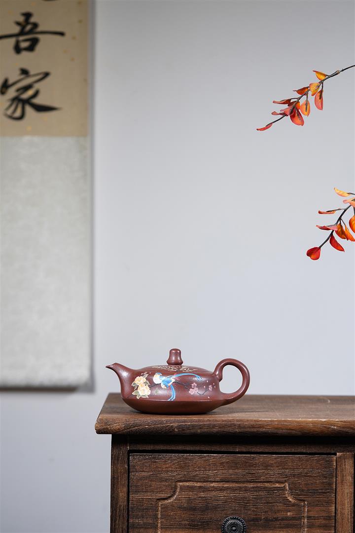 200cc原礦紫泥手制彩繪曲壺茶壺POT8438