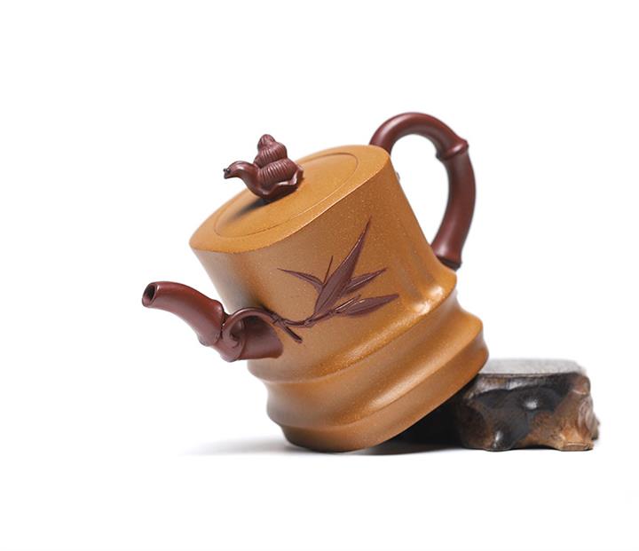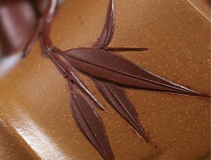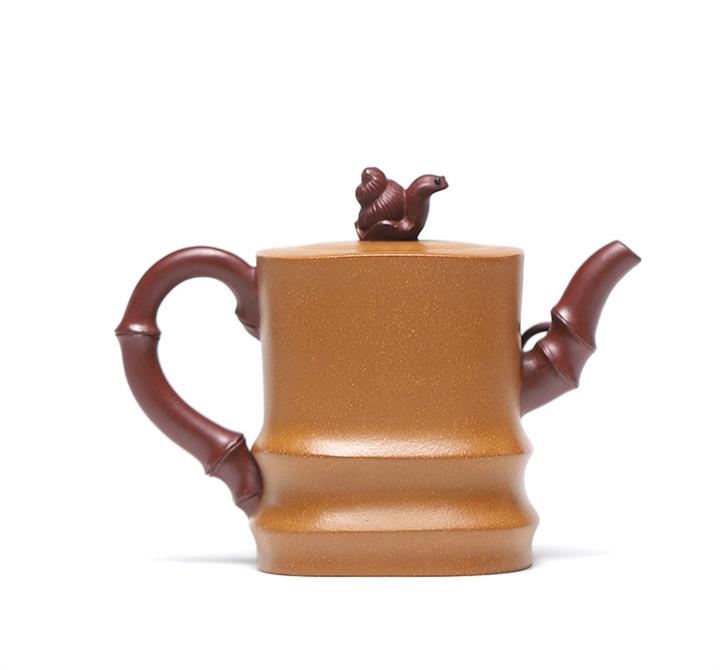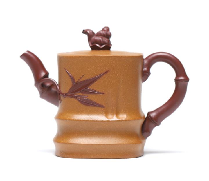 原礦粗砂朱泥明式金葉茶壺POT7185
