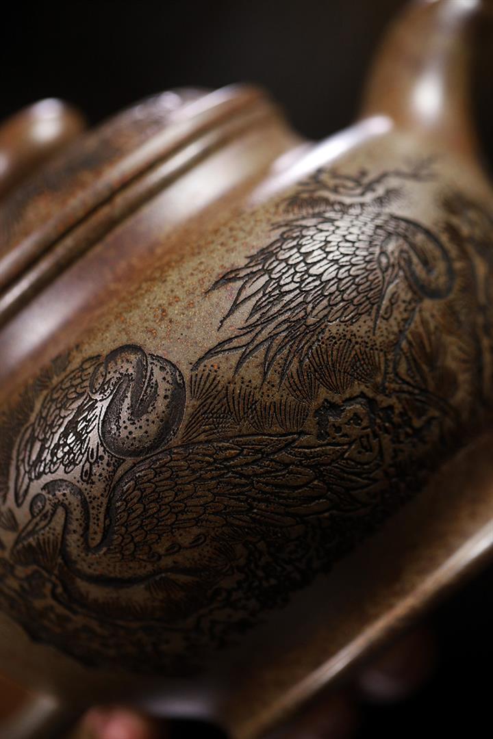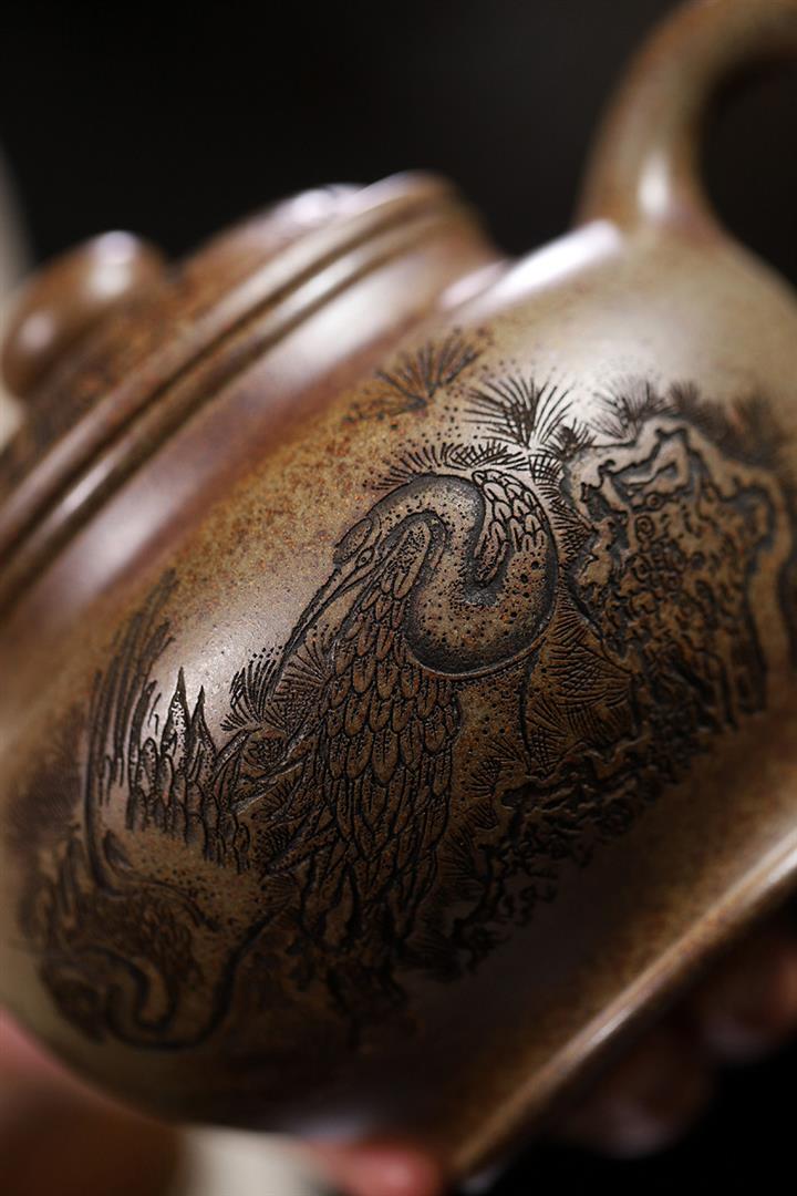 650cc柴燒沈香泥松鶴延年掇只泡茶壺POT8457
