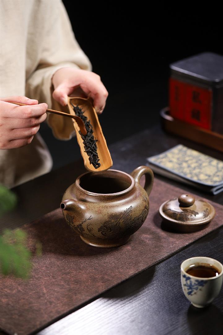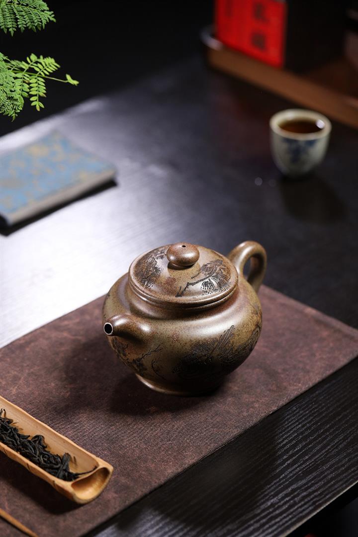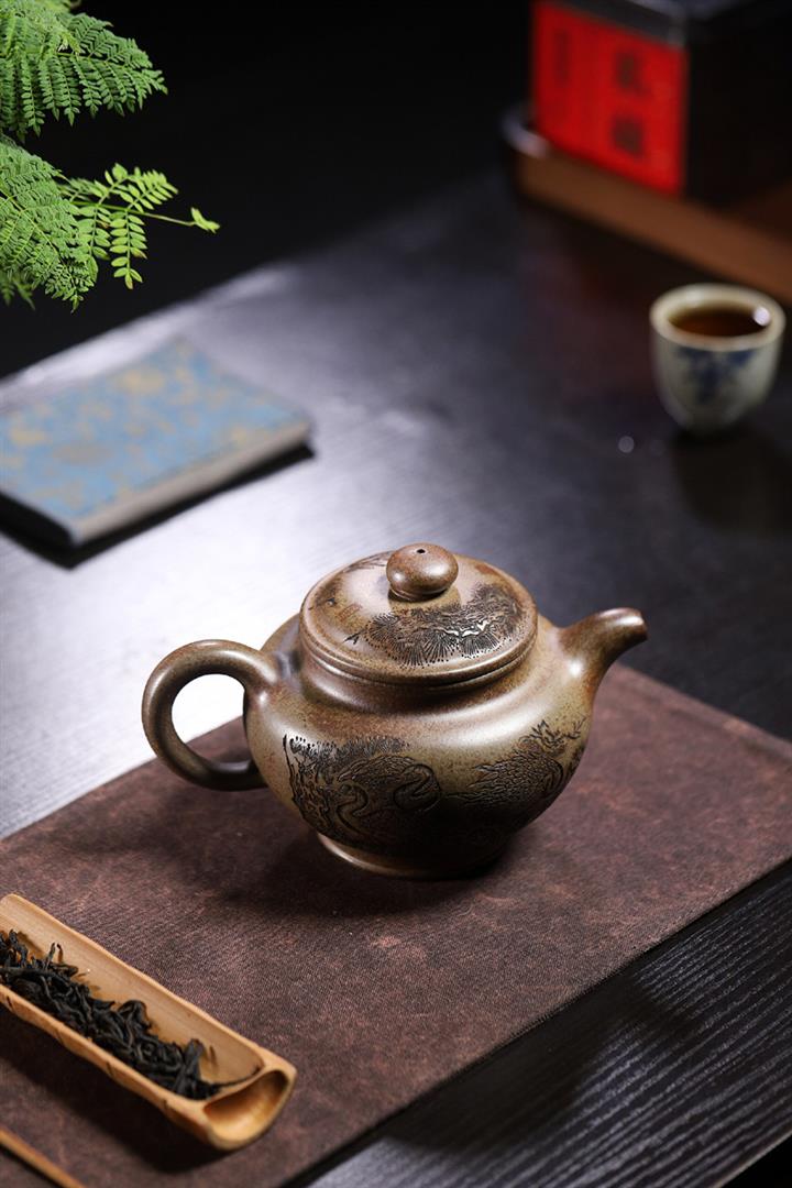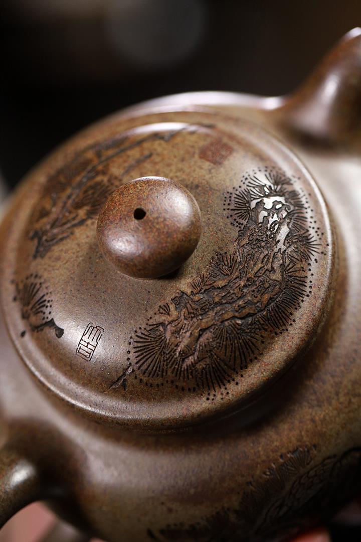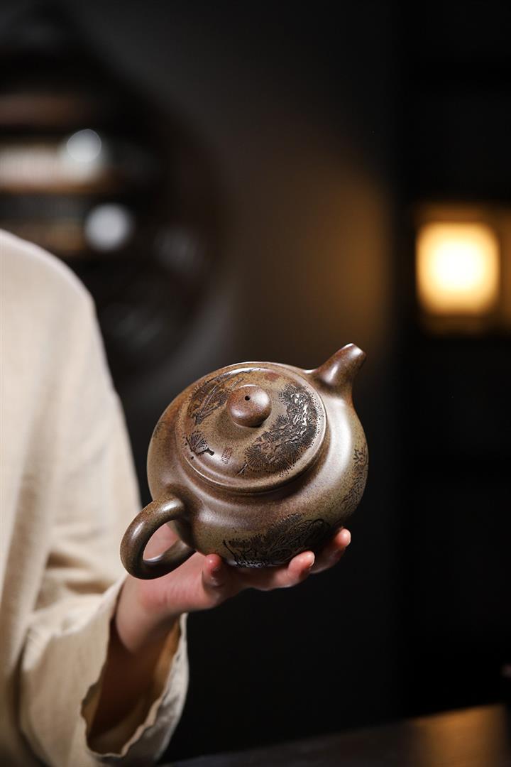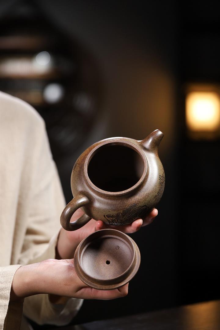 原礦紫泥刻繪石瓢紫砂壺POT4752
