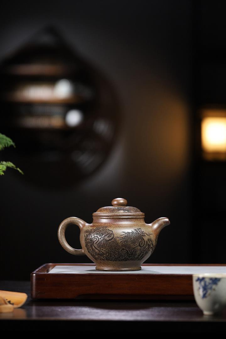【作品介紹】此款壺形線條流暢,壺把,壺嘴,壺身壹氣呵成栩栩如生,是收藏把玩的好壺,泥料色澤古樸典雅,日久使用,漸露鋒芒,養成變化快,溫潤莊重,用其泡茶,使用的年代久,壺身就溫潤,泡出來的茶湯也就醇郁芳馨。
