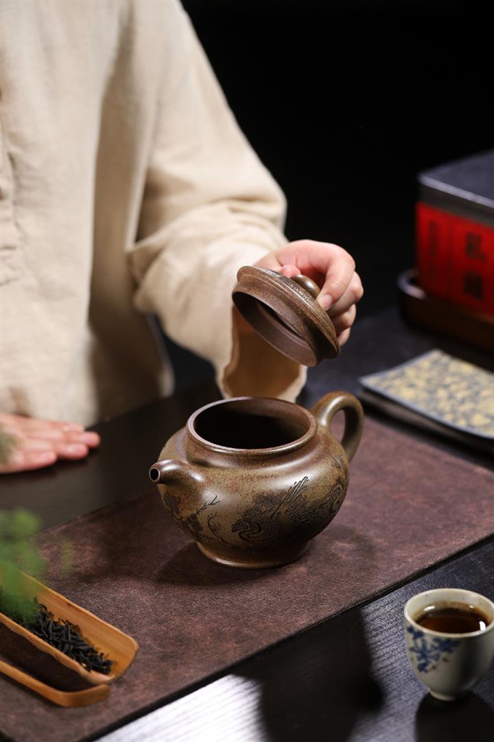 【泥料特點】砂土氣重,似淳實農民,日久使用,漸露鋒芒,養成變化,溫潤莊重。紫砂是壹種雙重氣孔結構的多孔性材質,氣孔微細,密度高。用紫砂壺沏茶,不失原味,且香不渙散,得茶之真香真味。紫砂使用越久,壺身色澤越發光亮照人,氣韻溫雅。紫砂壺長久使用器身會因撫摸擦拭,變得越發溫潤光澤。