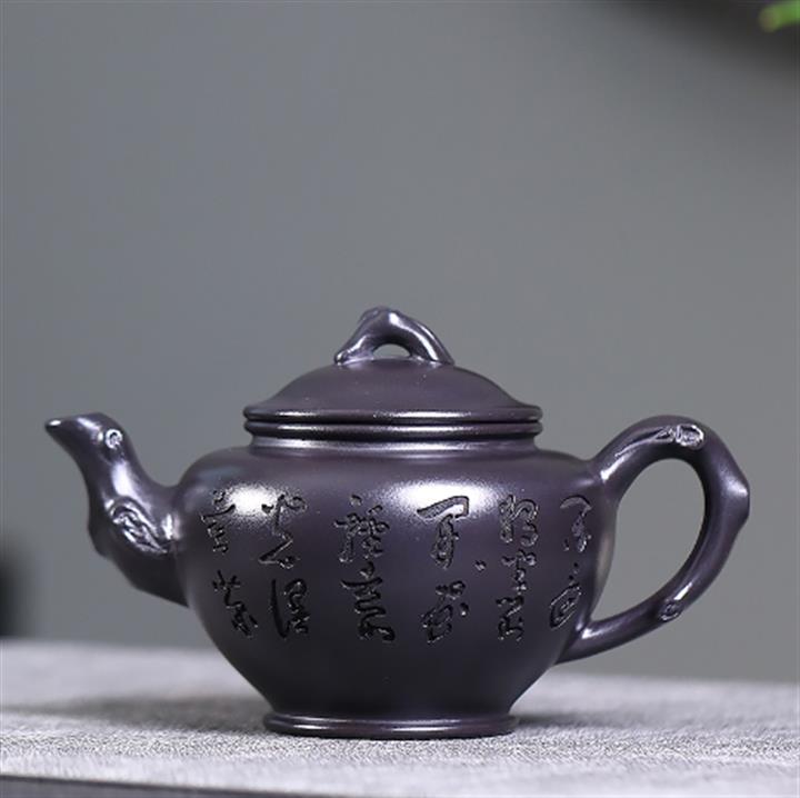 350cc原礦墨綠泥通身刻竹之清雅茶壺POT8302