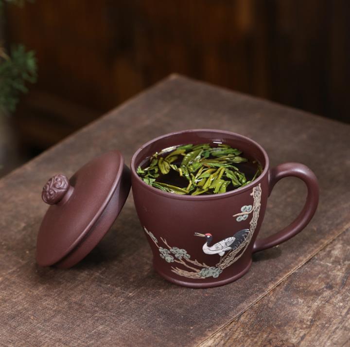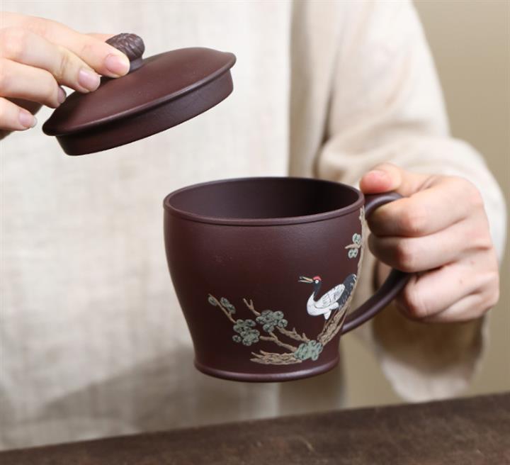 345cc原礦紫泥手工泥繪茶杯POT8463
