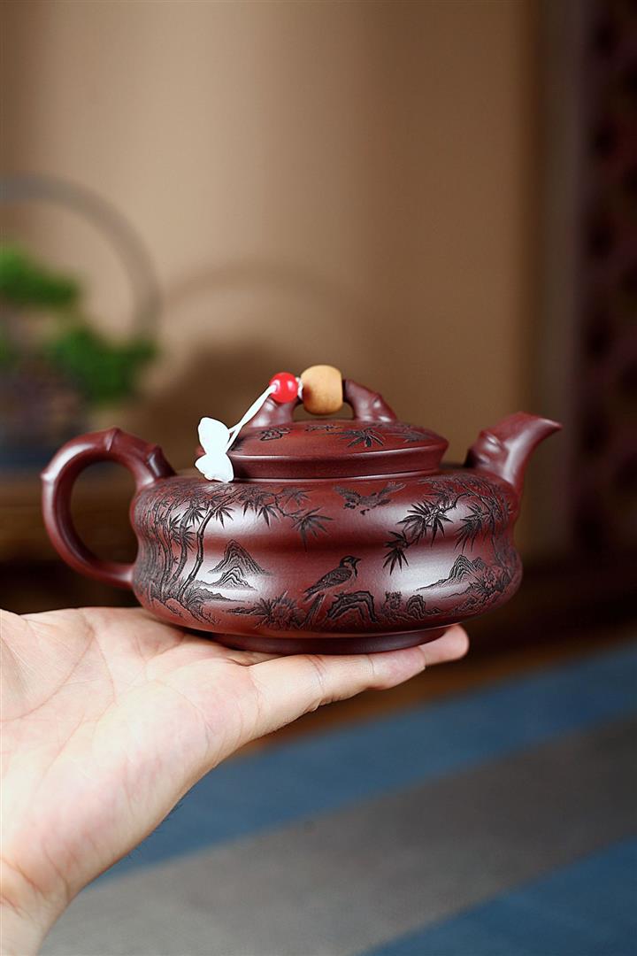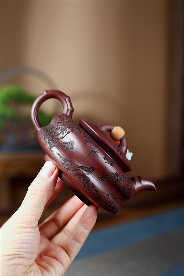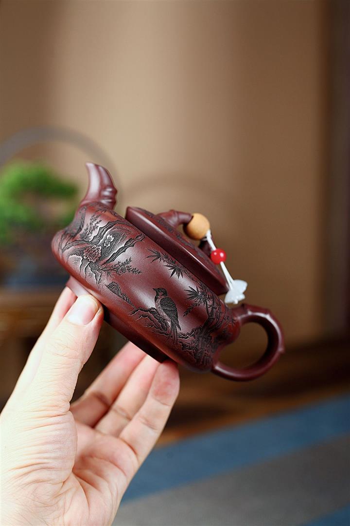 【作品介紹】此款壺形線條流暢,壺把,壺嘴,壺身壹氣呵成栩栩如生,是收藏把玩的好壺,泥料色澤古樸典雅,日久使用,漸露鋒芒,養成變化快,溫潤莊重,用其泡茶,使用的年代久,壺身就溫潤,泡出來的茶湯也就醇郁芳馨。