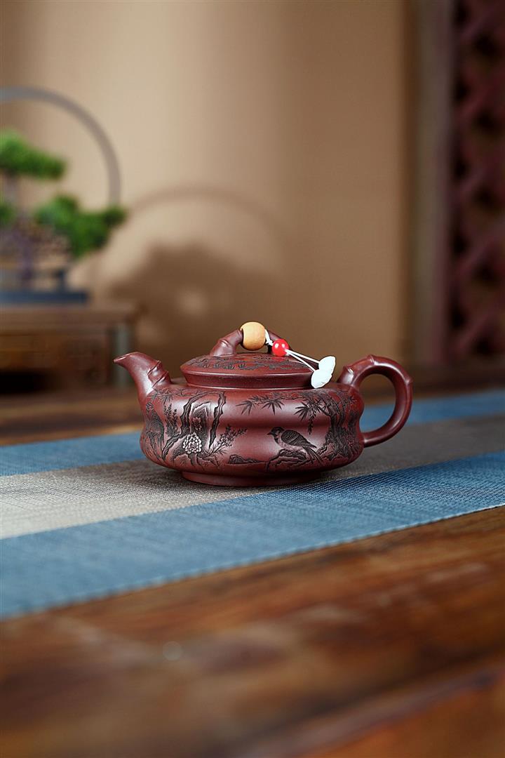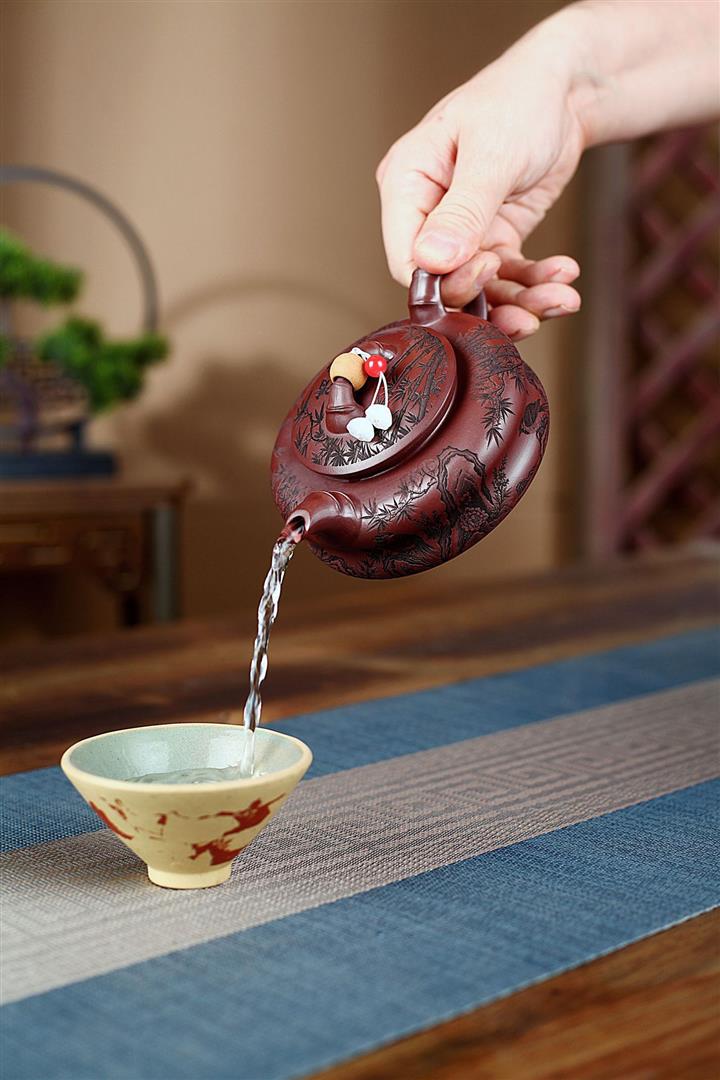 【泥料特點】砂土氣重,似淳實農民,日久使用,漸露鋒芒,養成變化,溫潤莊重。紫砂是壹種雙重氣孔結構的多孔性材質,氣孔微細,密度高。用紫砂壺沏茶,不失原味,且香不渙散,得茶之真香真味。紫砂使用越久,壺身色澤越發光亮照人,氣韻溫雅。紫砂壺長久使用器身會因撫摸擦拭,變得越發溫潤光澤。
