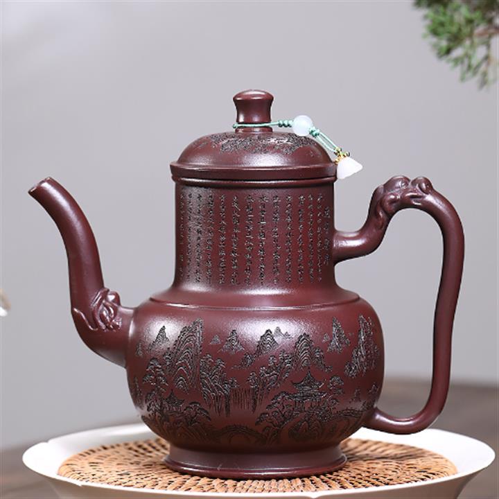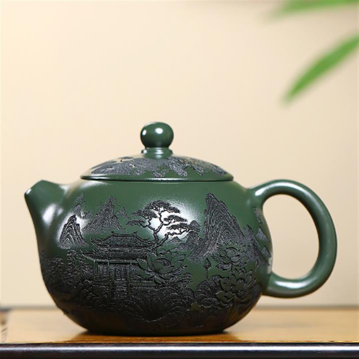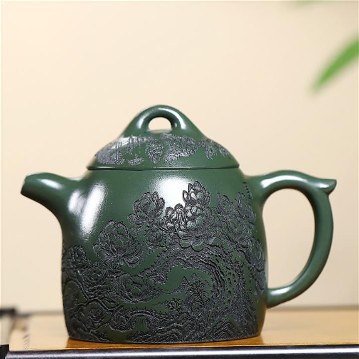 450cc原礦翡翠綠泥滿刻秦權茶壺POT8279