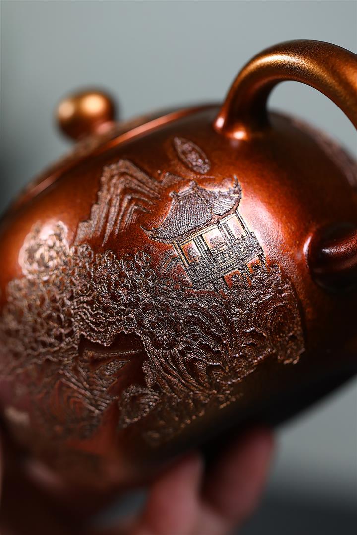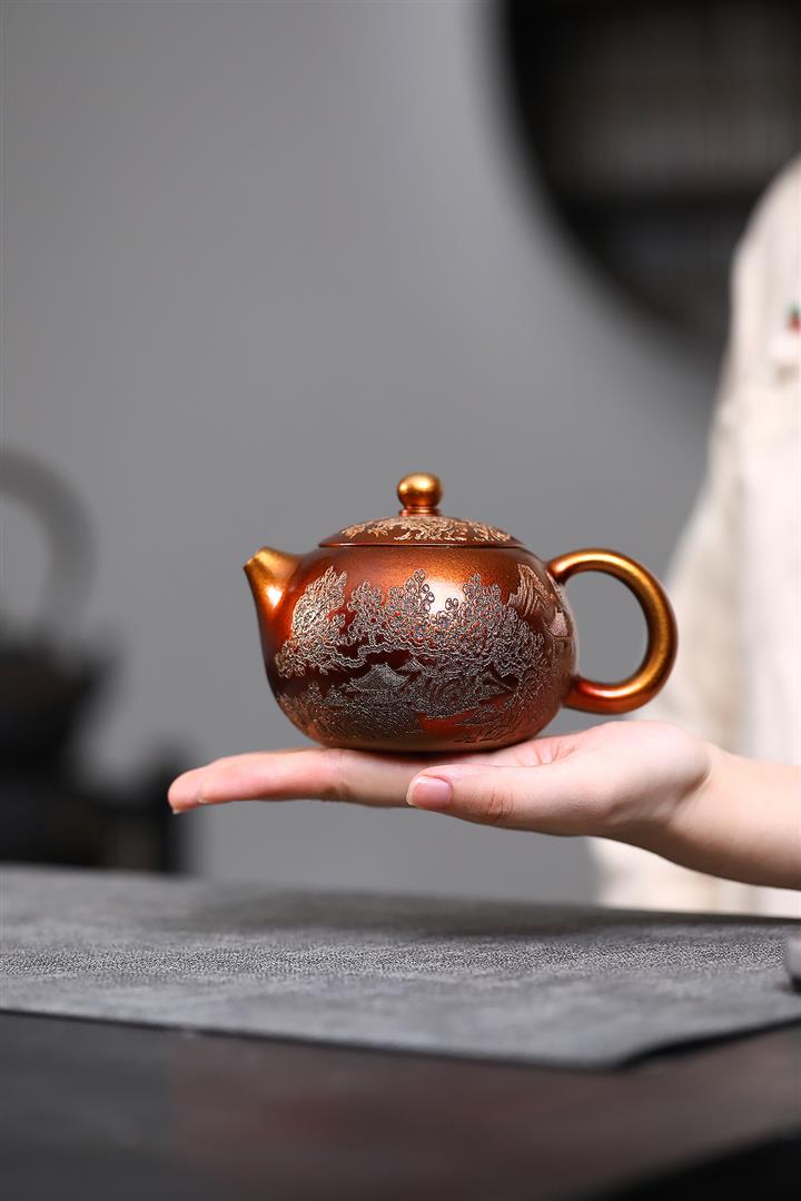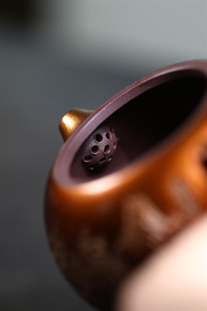 【泥料特點】砂土氣重,似淳實農民,日久使用,漸露鋒芒,養成變化,溫潤莊重。紫砂是壹種雙重氣孔結構的多孔性材質,氣孔微細,密度高。用紫砂壺沏茶,不失原味,且香不渙散,得茶之真香真味。紫砂使用越久,壺身色澤越發光亮照人,氣韻溫雅。紫砂壺長久使用器身會因撫摸擦拭,變得越發溫潤光澤。