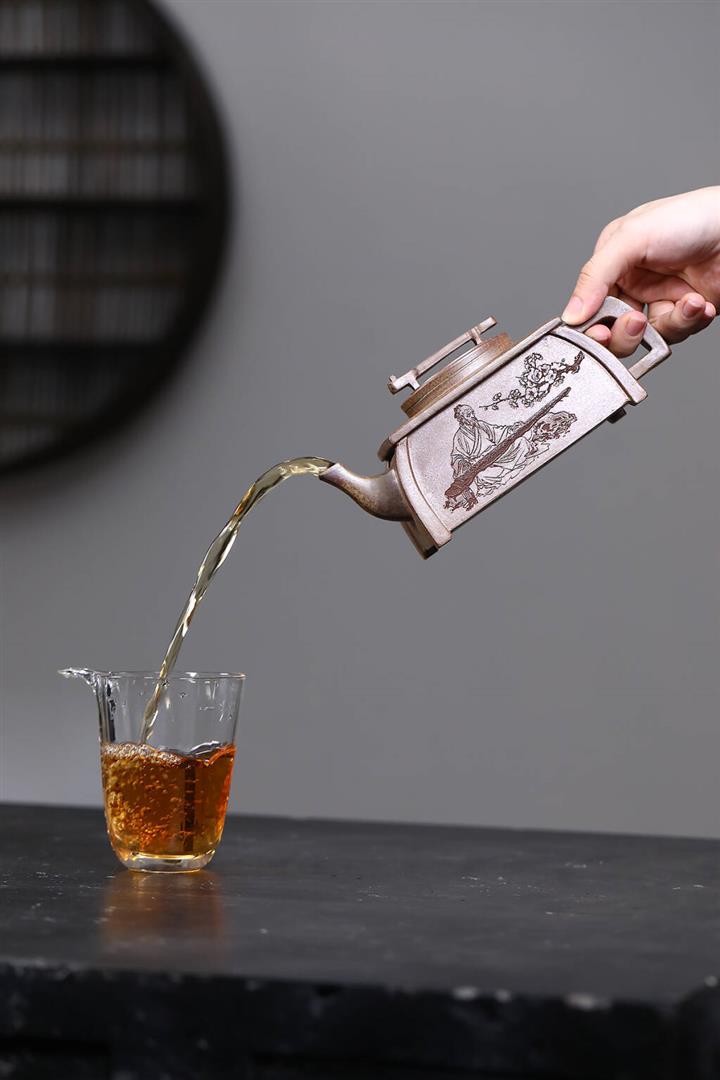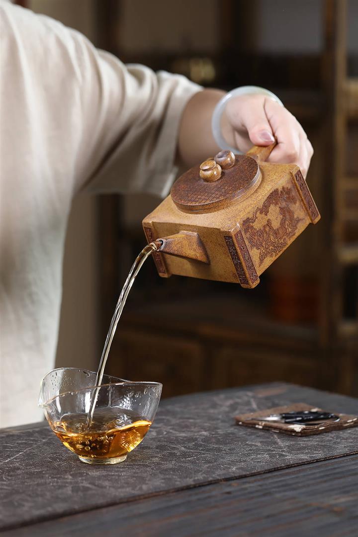 【泥料特點】砂土氣重,似淳實農民,日久使用,漸露鋒芒,養成變化,溫潤莊重。紫砂是壹種雙重氣孔結構的多孔性材質,氣孔微細,密度高。用紫砂壺沏茶,不失原味,且香不渙散,得茶之真香真味。紫砂使用越久,壺身色澤越發光亮照人,氣韻溫雅。紫砂壺長久使用器身會因撫摸擦拭,變得越發溫潤光澤。