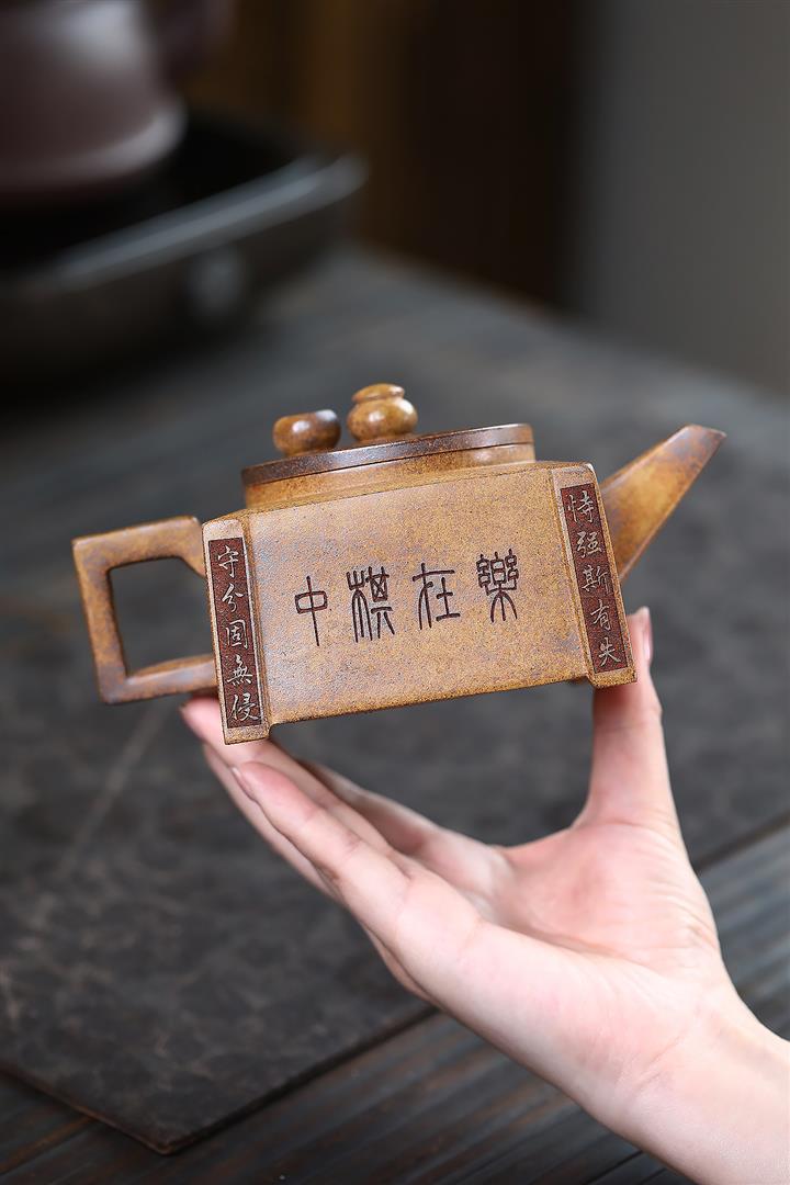 【作品介紹】此款壺形線條流暢,壺把,壺嘴,壺身壹氣呵成栩栩如生,是收藏把玩的好壺,泥料色澤古樸典雅,日久使用,漸露鋒芒,養成變化快,溫潤莊重,用其泡茶,使用的年代久,壺身就溫潤,泡出來的茶湯也就醇郁芳馨。