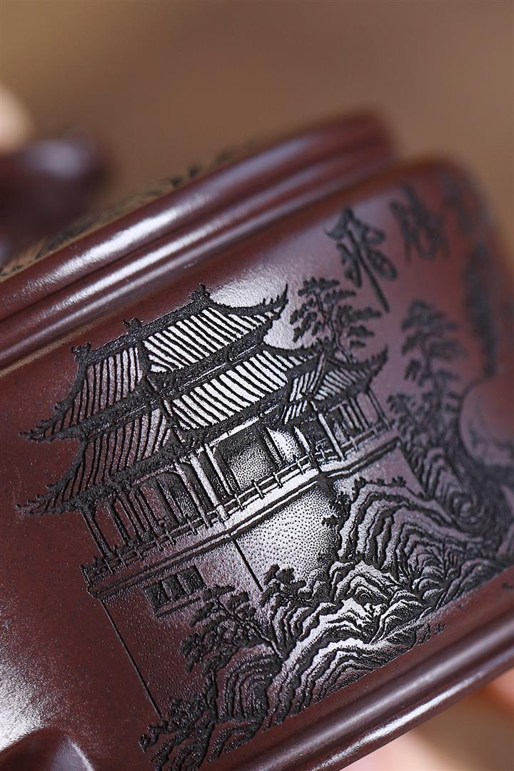 原礦玄鐵石黃刻繪覓香苑曲壺POT7592