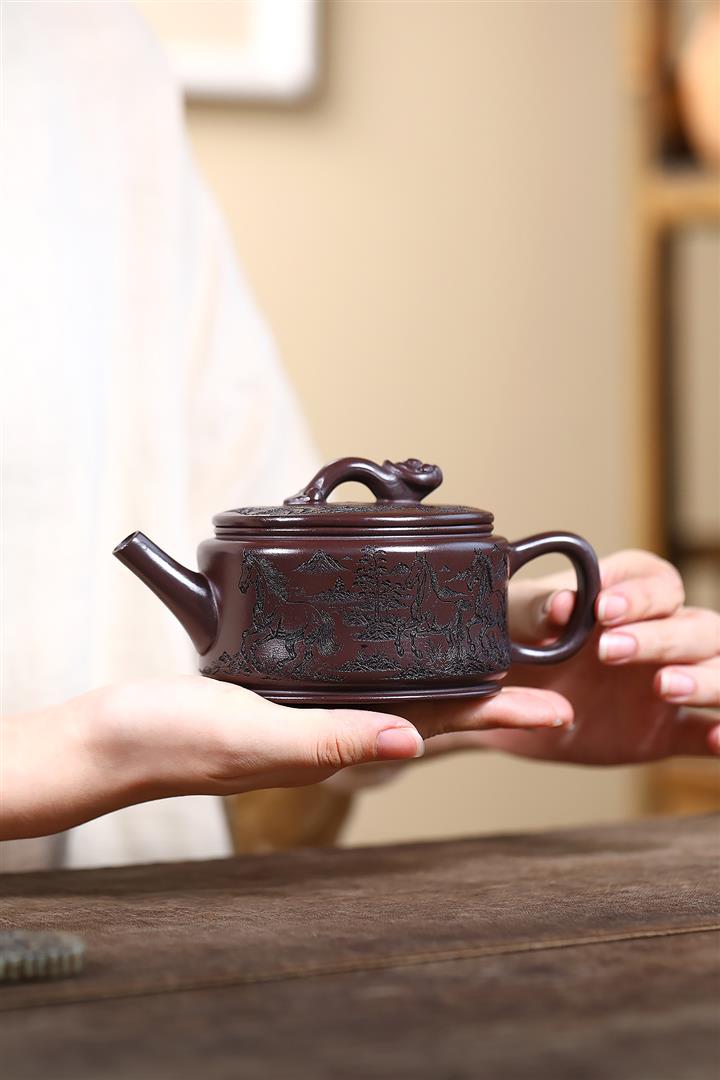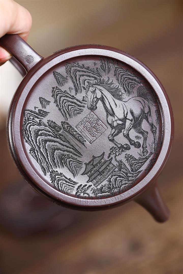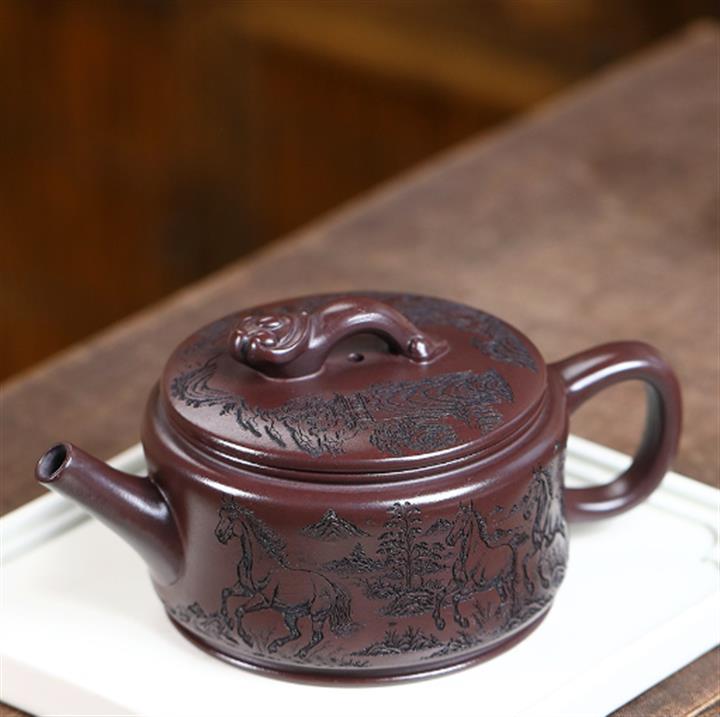 330cc原礦老紫泥馬到成功如意漢瓦茶壺POT8490