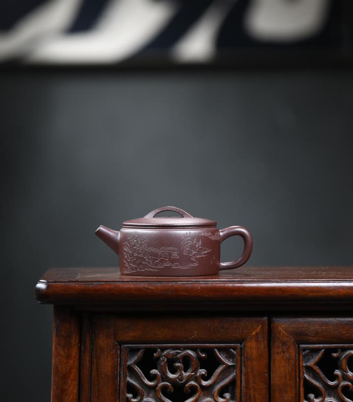 紫泥高溫柴燒漢瓦紫砂壺POT5526