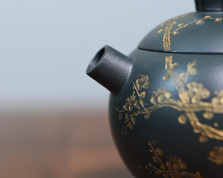 140cc九齡君子蘭墨綠泥小石榴茶壺POT8493