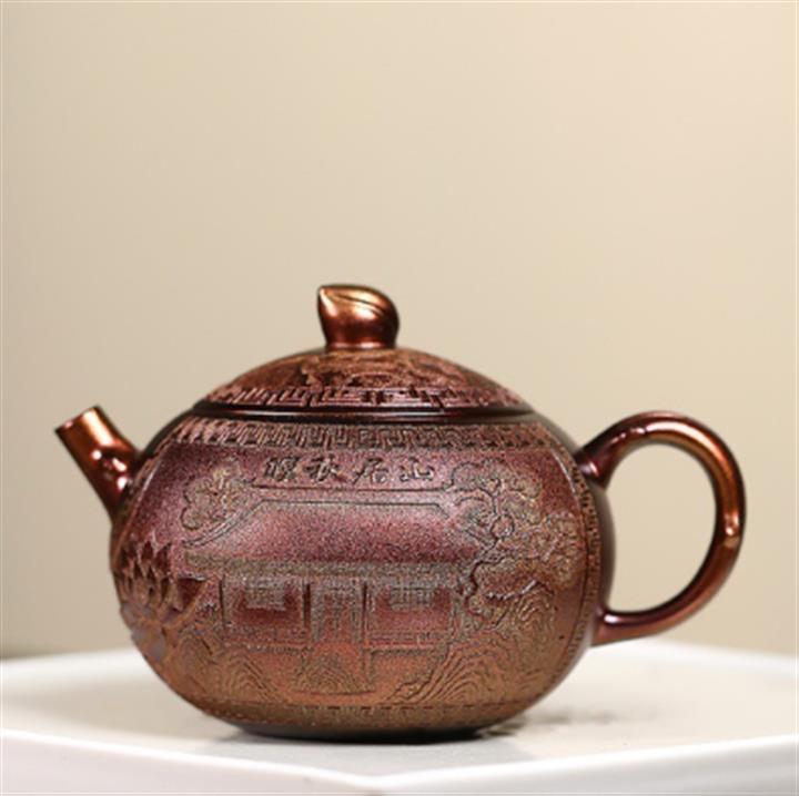 【作品介紹】此款壺形線條流暢,壺把,壺嘴,壺身壹氣呵成栩栩如生,是收藏把玩的好壺,泥料色澤古樸典雅,日久使用,漸露鋒芒,養成變化快,溫潤莊重,用其泡茶,使用的年代久,壺身就溫潤,泡出來的茶湯也就醇郁芳馨。