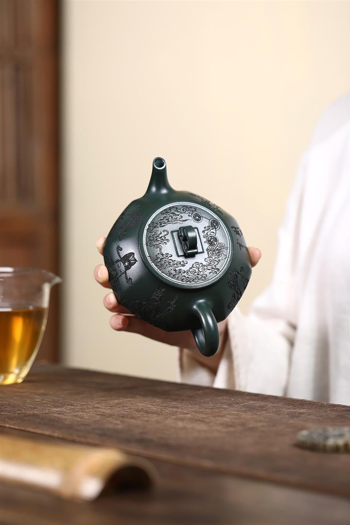 【作品介紹】此款壺形線條流暢,壺把,壺嘴,壺身壹氣呵成栩栩如生,是收藏把玩的好壺,泥料色澤古樸典雅,日久使用,漸露鋒芒,養成變化快,溫潤莊重,用其泡茶,使用的年代久,壺身就溫潤,泡出來的茶湯也就醇郁芳馨。