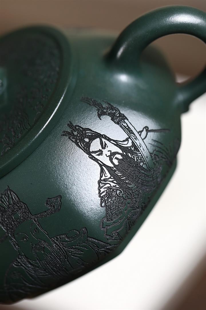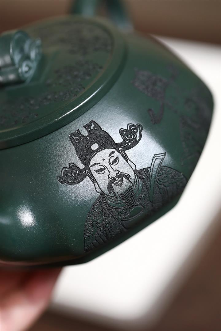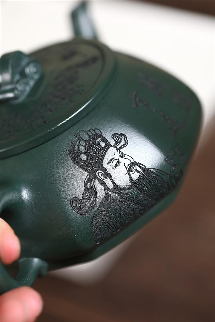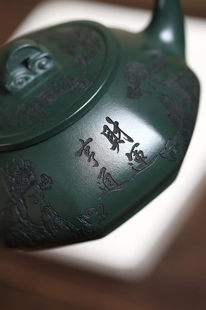 原礦紫泥刻山景雙線雲華茶壺POT6945