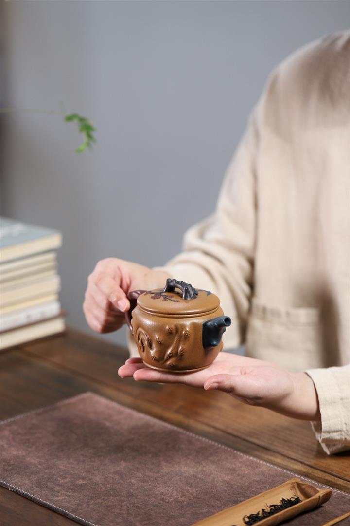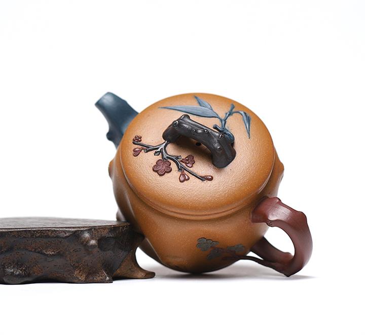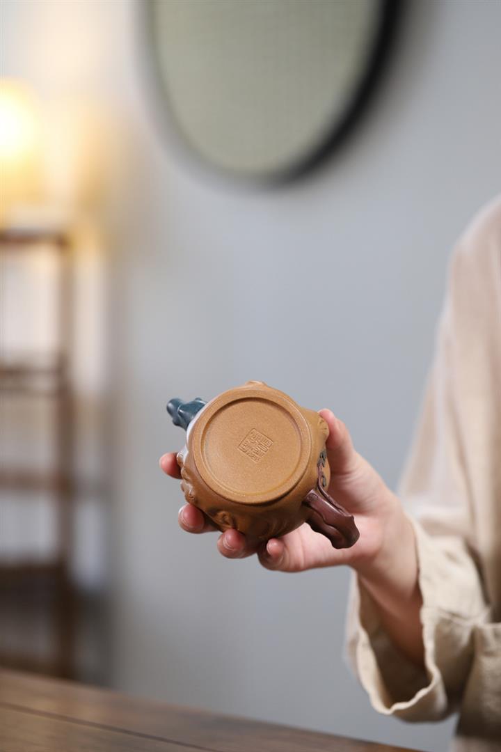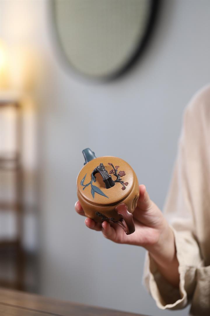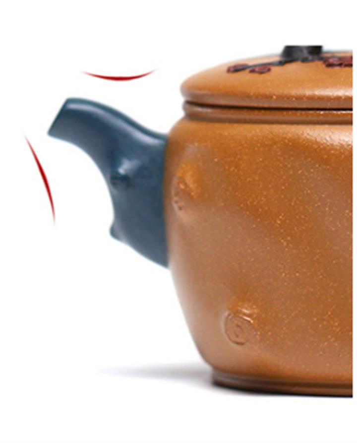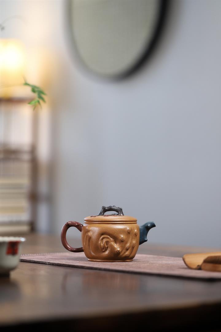 原礦石黃刻繪山水曲壺茶壺POT7683