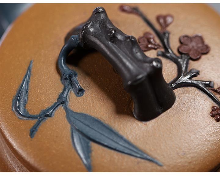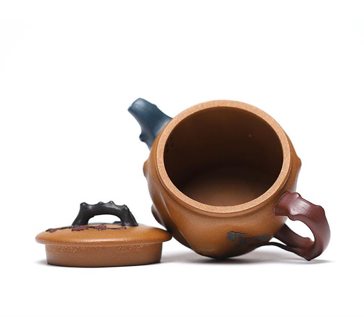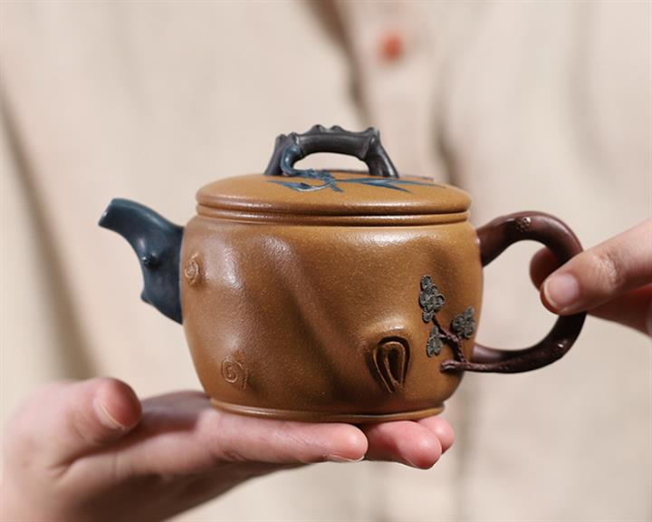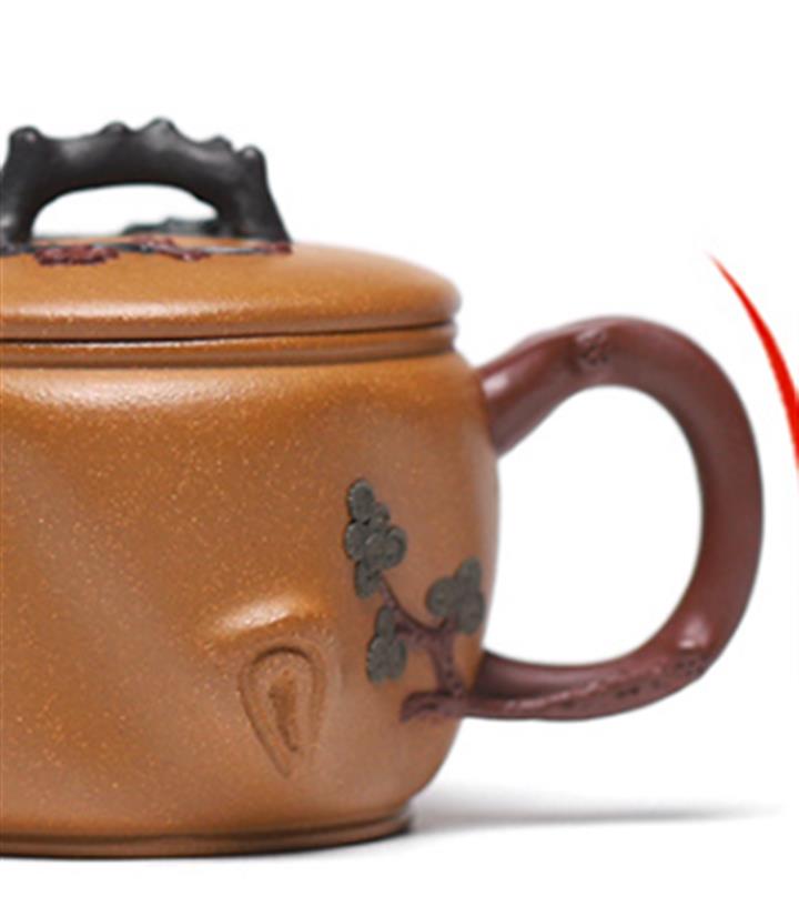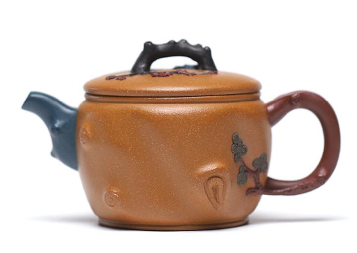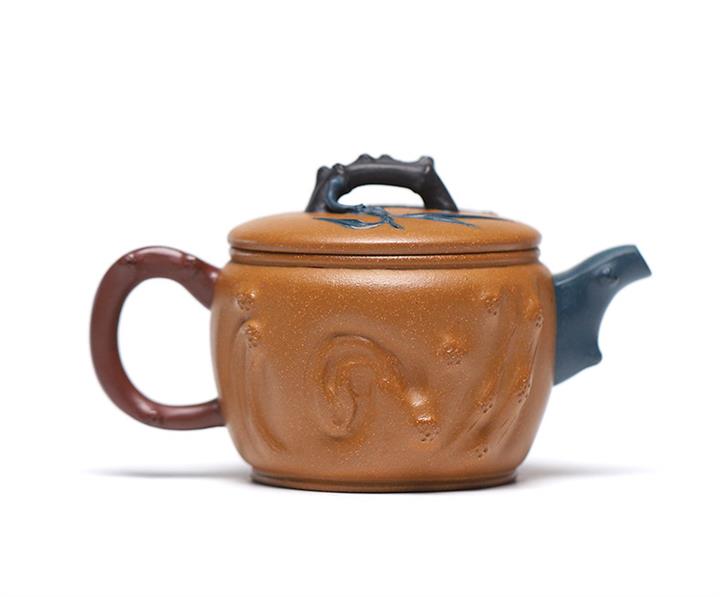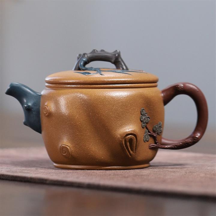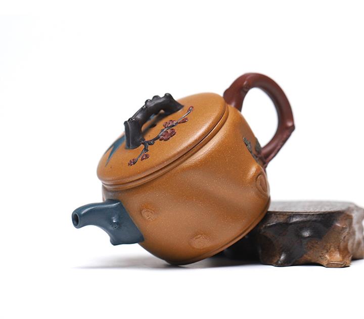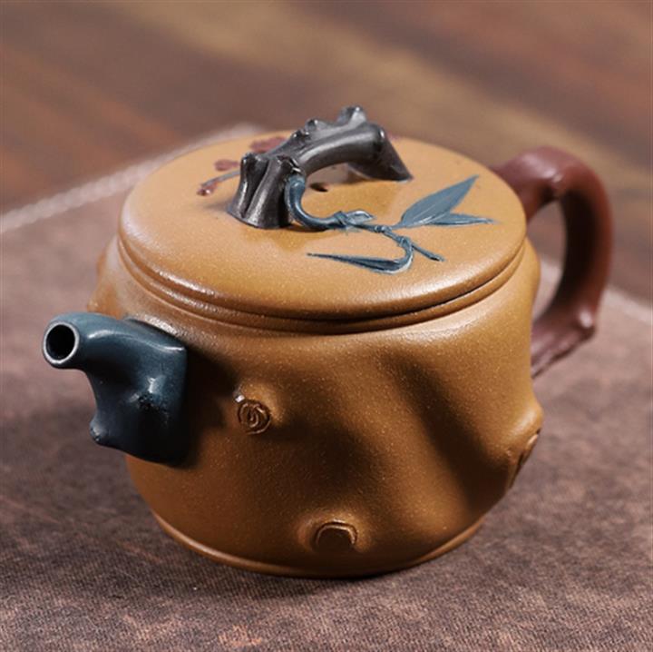 原礦石黃刻繪山水曲壺茶壺POT7683