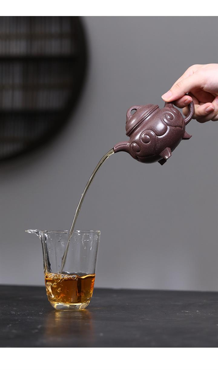 【作品介紹】此款壺形線條流暢,壺把,壺嘴,壺身壹氣呵成栩栩如生,是收藏把玩的好壺,泥料色澤古樸典雅,日久使用,漸露鋒芒,養成變化快,溫潤莊重,用其泡茶,使用的年代久,壺身就溫潤,泡出來的茶湯也就醇郁芳馨。