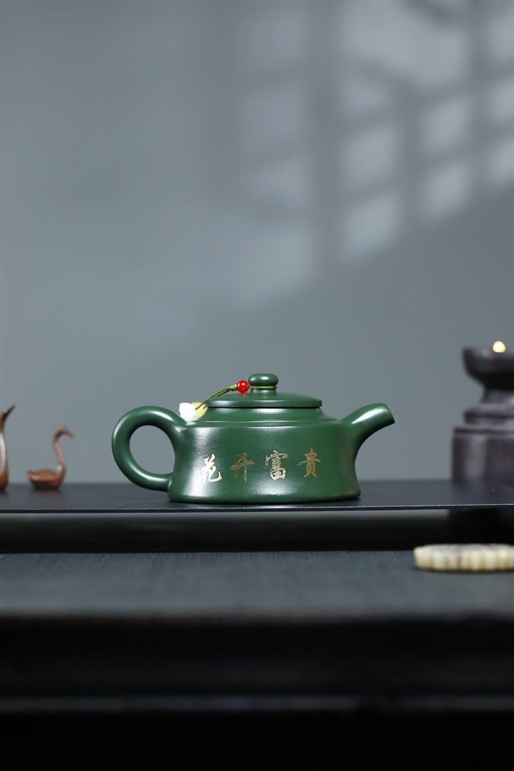 200cc原礦綠泥貼金丹金映翠泡茶壺POT8554