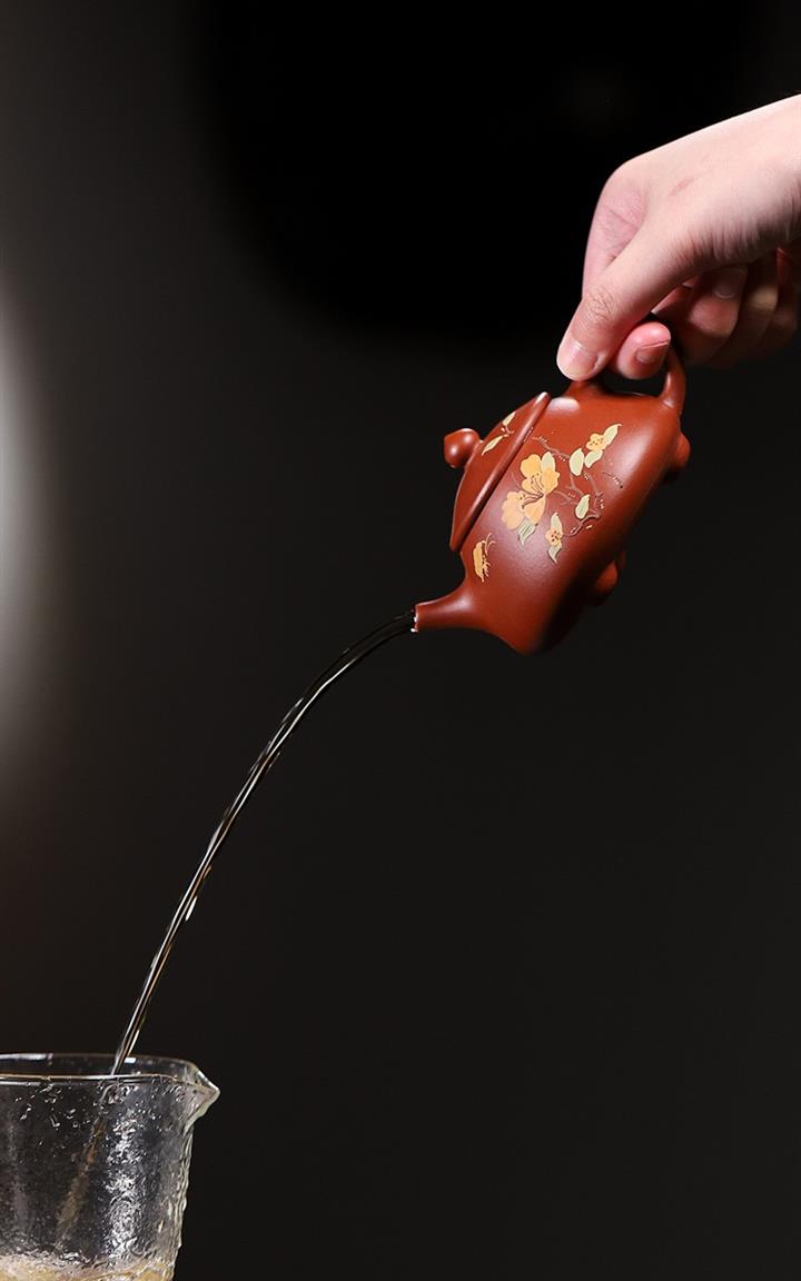 【泥料特點】砂土氣重,似淳實農民,日久使用,漸露鋒芒,養成變化,溫潤莊重。紫砂是壹種雙重氣孔結構的多孔性材質,氣孔微細,密度高。用紫砂壺沏茶,不失原味,且香不渙散,得茶之真香真味。紫砂使用越久,壺身色澤越發光亮照人,氣韻溫雅。紫砂壺長久使用器身會因撫摸擦拭,變得越發溫潤光澤。