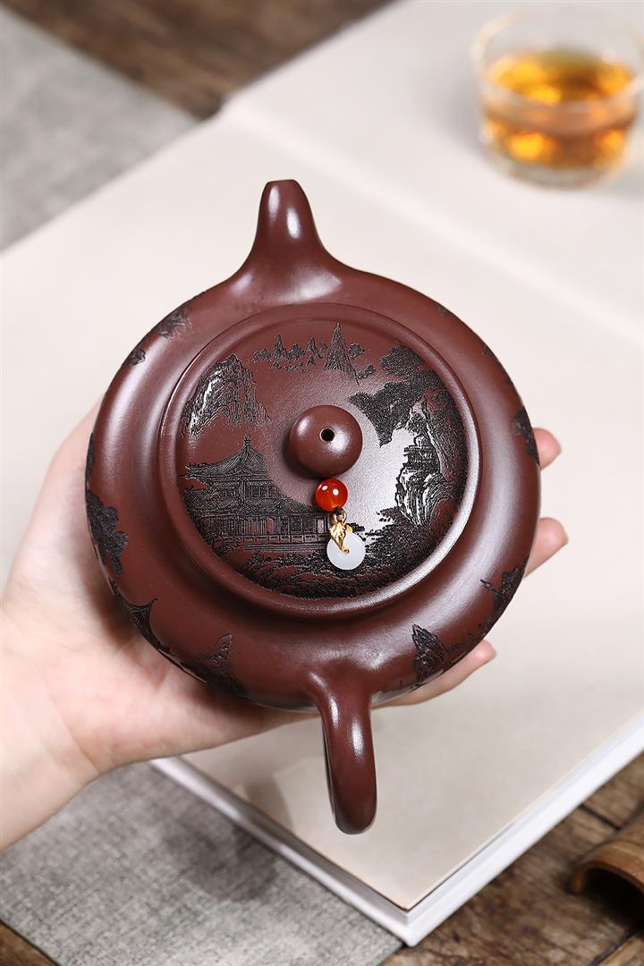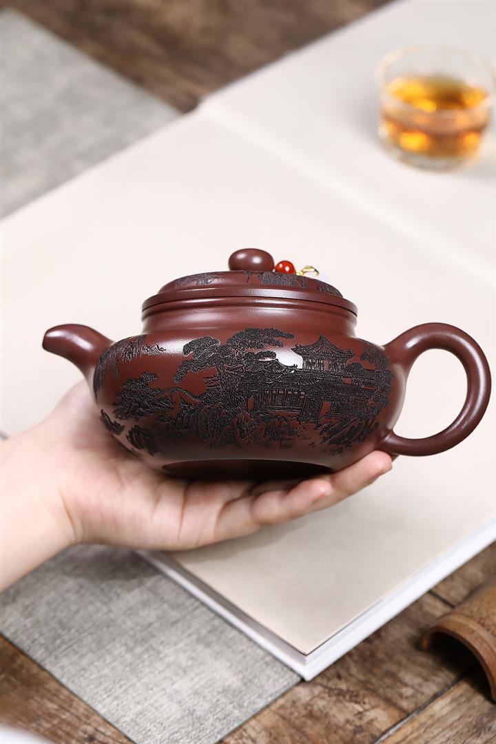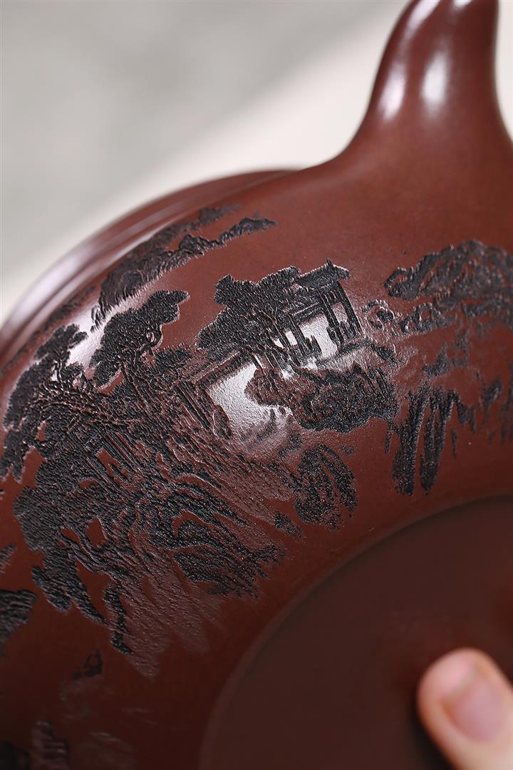 365cc原礦紫泥刻繪山水仿古茶壺POT8580