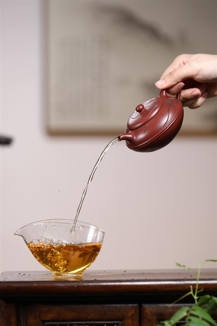 【泥料特點】砂土氣重,似淳實農民,日久使用,漸露鋒芒,養成變化,溫潤莊重。紫砂是壹種雙重氣孔結構的多孔性材質,氣孔微細,密度高。用紫砂壺沏茶,不失原味,且香不渙散,得茶之真香真味。紫砂使用越久,壺身色澤越發光亮照人,氣韻溫雅。紫砂壺長久使用器身會因撫摸擦拭,變得越發溫潤光澤。