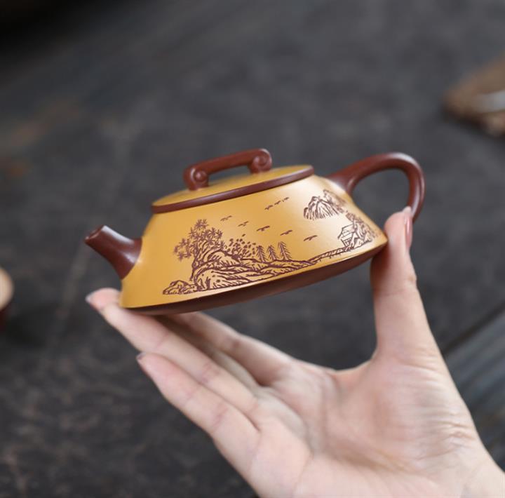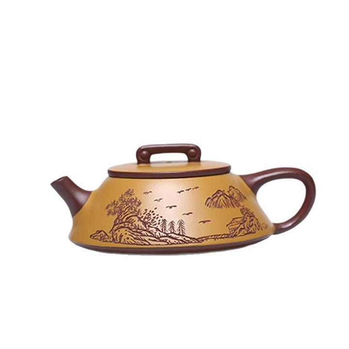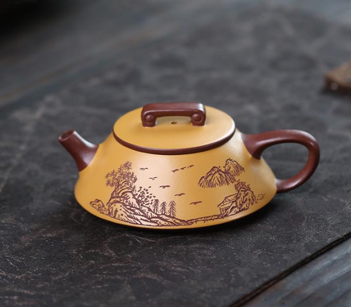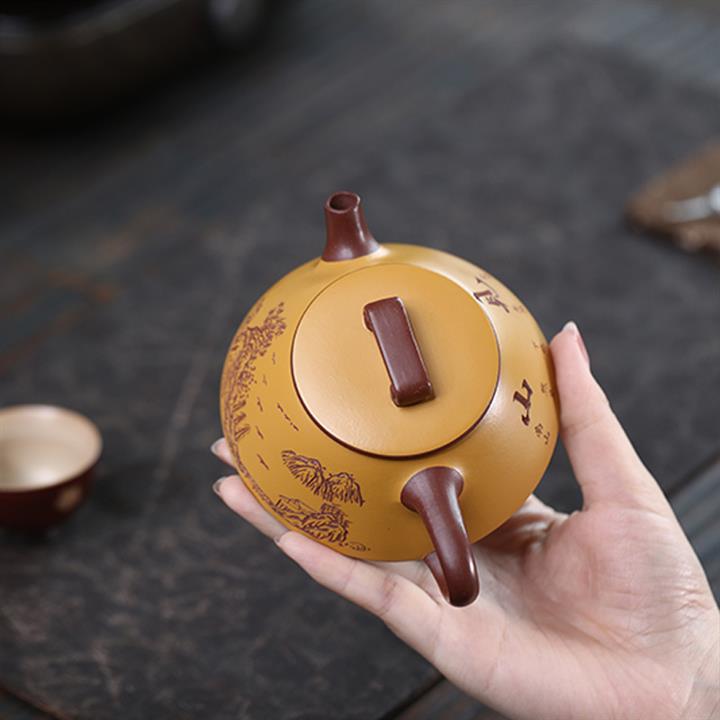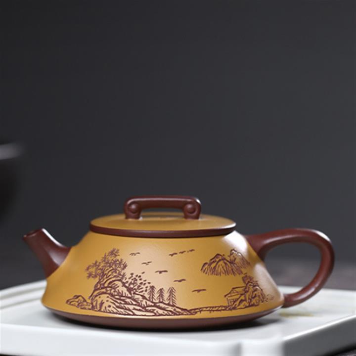 原礦紅降坡彩繪山水三足鼎立茶壺POT7805