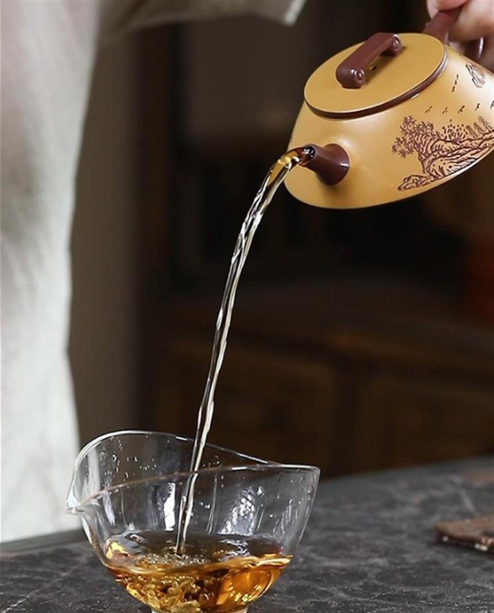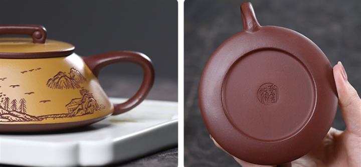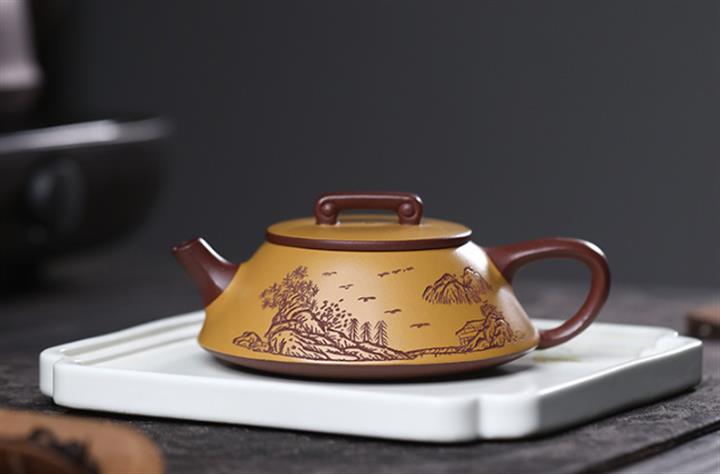 【泥料特點】砂土氣重,似淳實農民,日久使用,漸露鋒芒,養成變化,溫潤莊重。紫砂是壹種雙重氣孔結構的多孔性材質,氣孔微細,密度高。用紫砂壺沏茶,不失原味,且香不渙散,得茶之真香真味。紫砂使用越久,壺身色澤越發光亮照人,氣韻溫雅。紫砂壺長久使用器身會因撫摸擦拭,變得越發溫潤光澤。