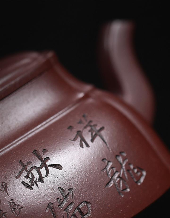 紫砂紅皮龍福祿合扁紫砂壺POT5698