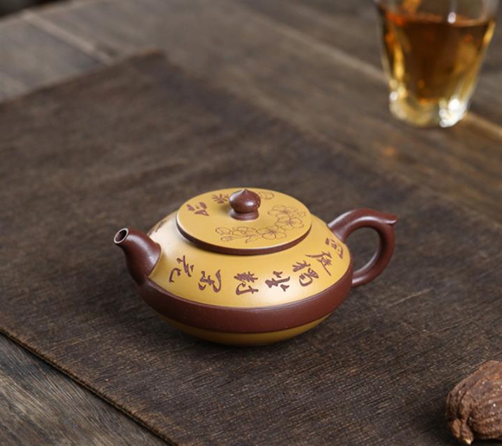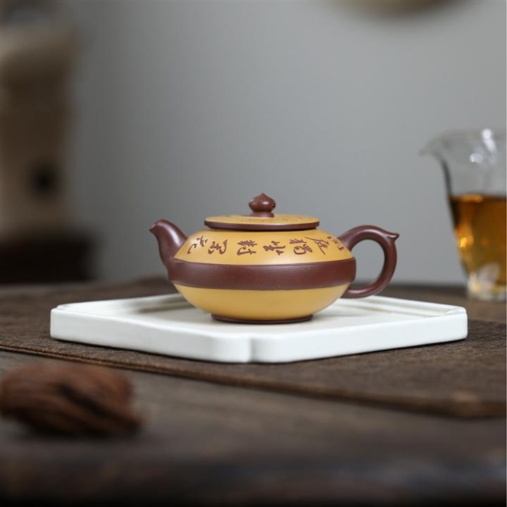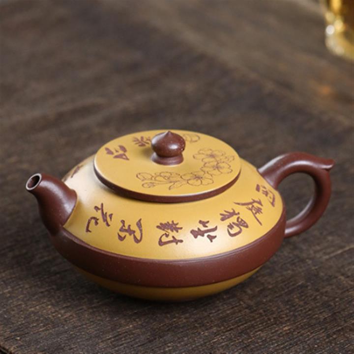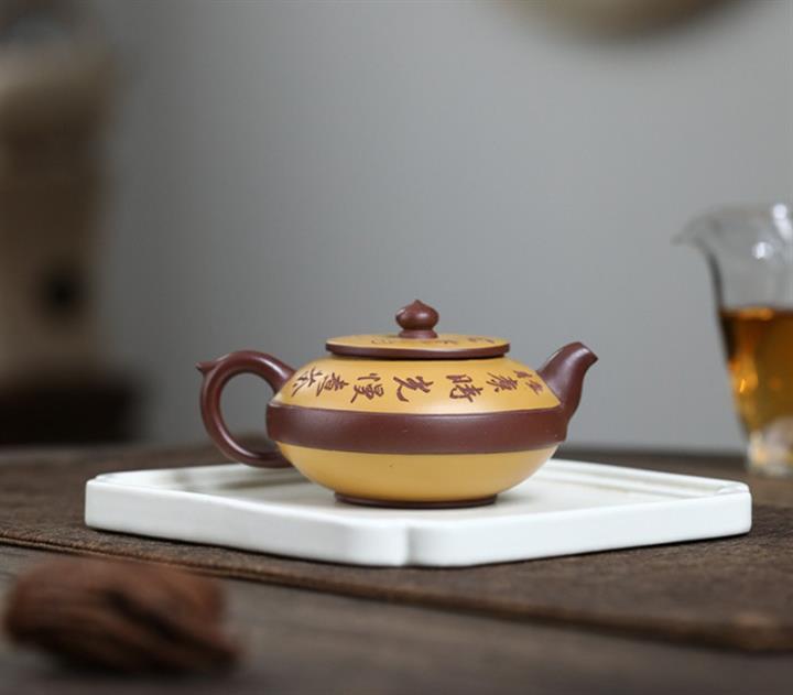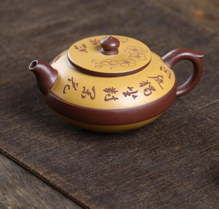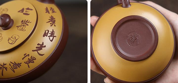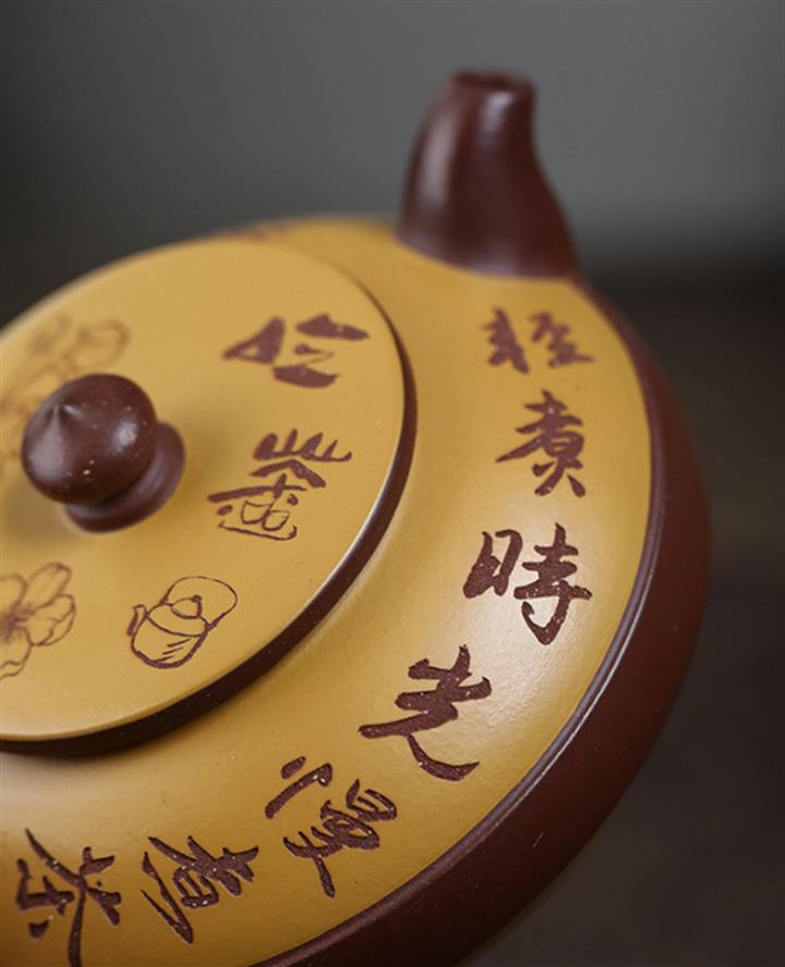 大紅袍還原燒手工描金美人肩紫砂壺POT6