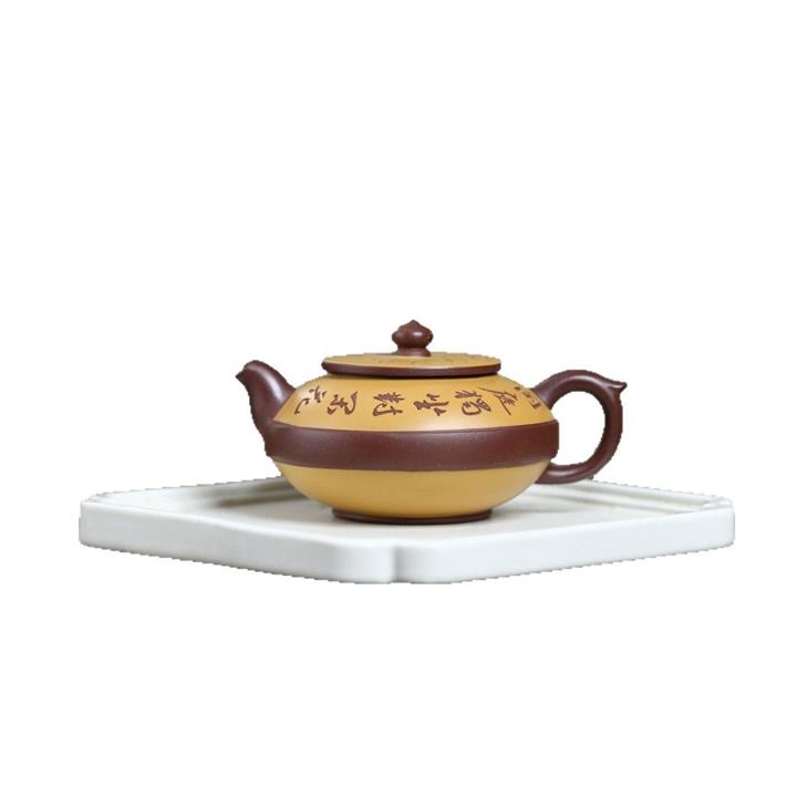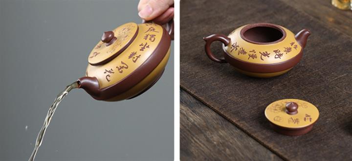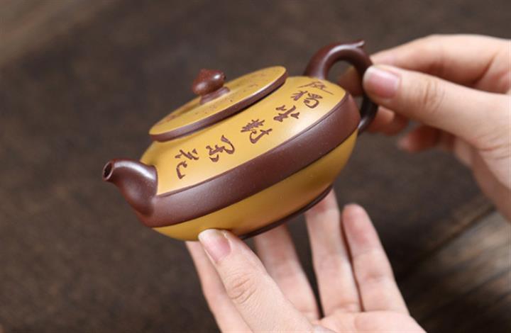 【泥料特點】砂土氣重,似淳實農民,日久使用,漸露鋒芒,養成變化,溫潤莊重。紫砂是壹種雙重氣孔結構的多孔性材質,氣孔微細,密度高。用紫砂壺沏茶,不失原味,且香不渙散,得茶之真香真味。紫砂使用越久,壺身色澤越發光亮照人,氣韻溫雅。紫砂壺長久使用器身會因撫摸擦拭,變得越發溫潤光澤。