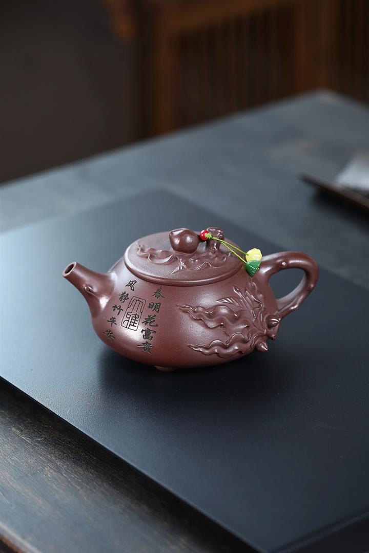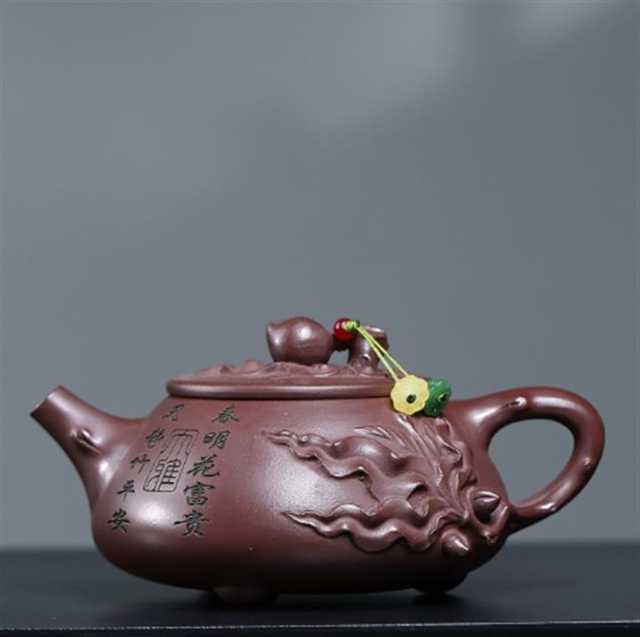 350cc原礦老紫泥桃源逸趣石瓢茶壺POT8615