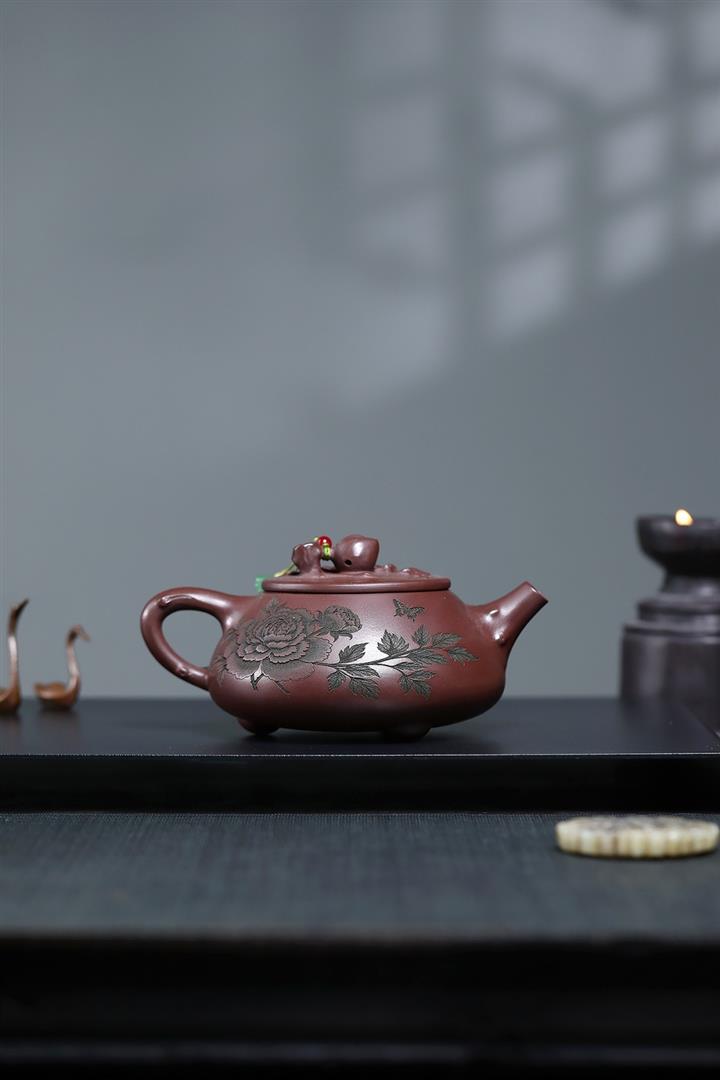 【作品介紹】此款壺形線條流暢,壺把,壺嘴,壺身壹氣呵成栩栩如生,是收藏把玩的好壺,泥料色澤古樸典雅,日久使用,漸露鋒芒,養成變化快,溫潤莊重,用其泡茶,使用的年代久,壺身就溫潤,泡出來的茶湯也就醇郁芳馨。